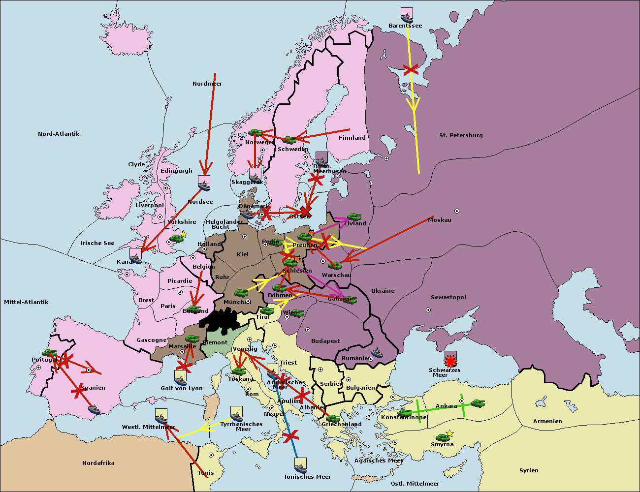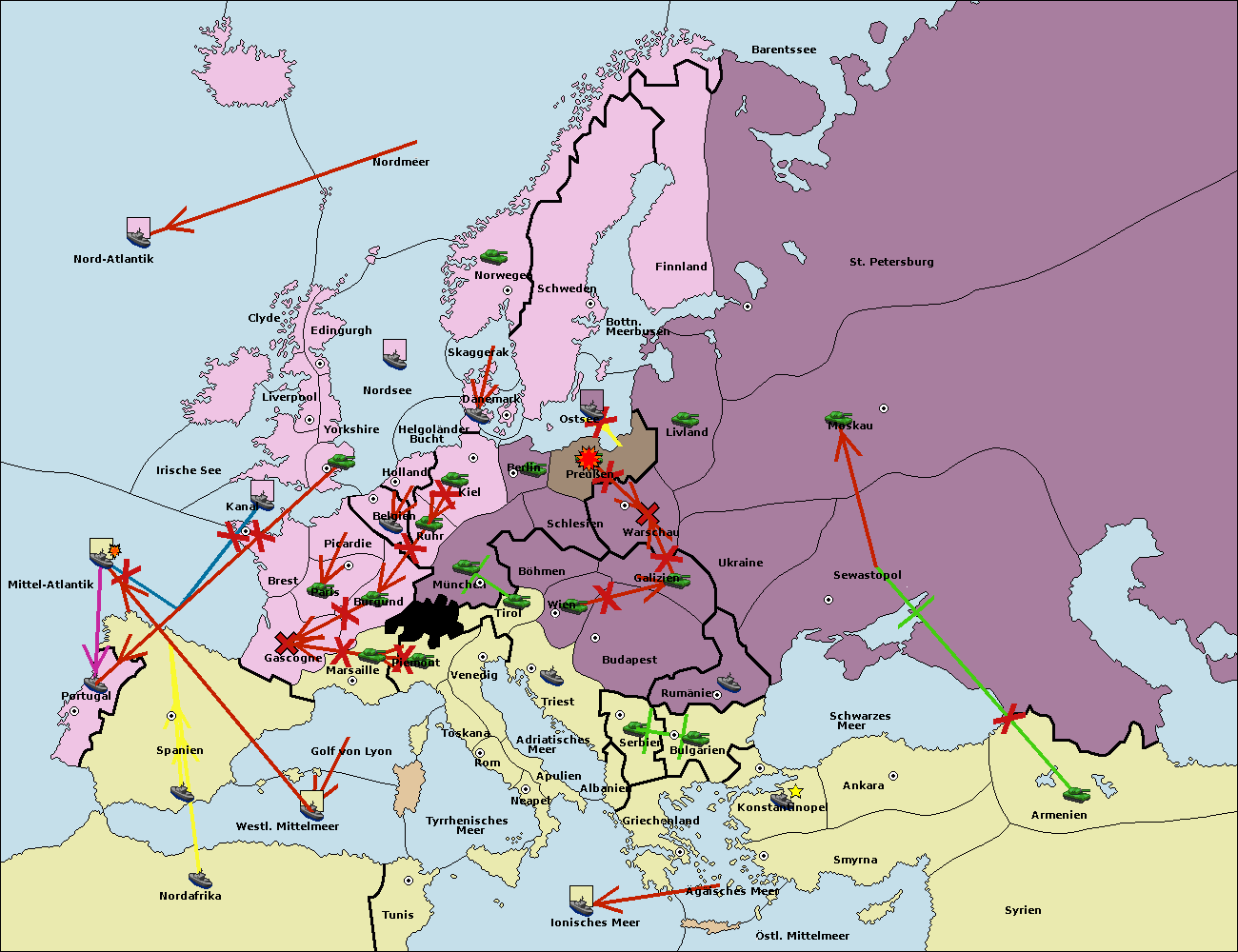 • Die Armee in Griechenland support move nach Bulgarien von Konstantinopel. (gescheitert)