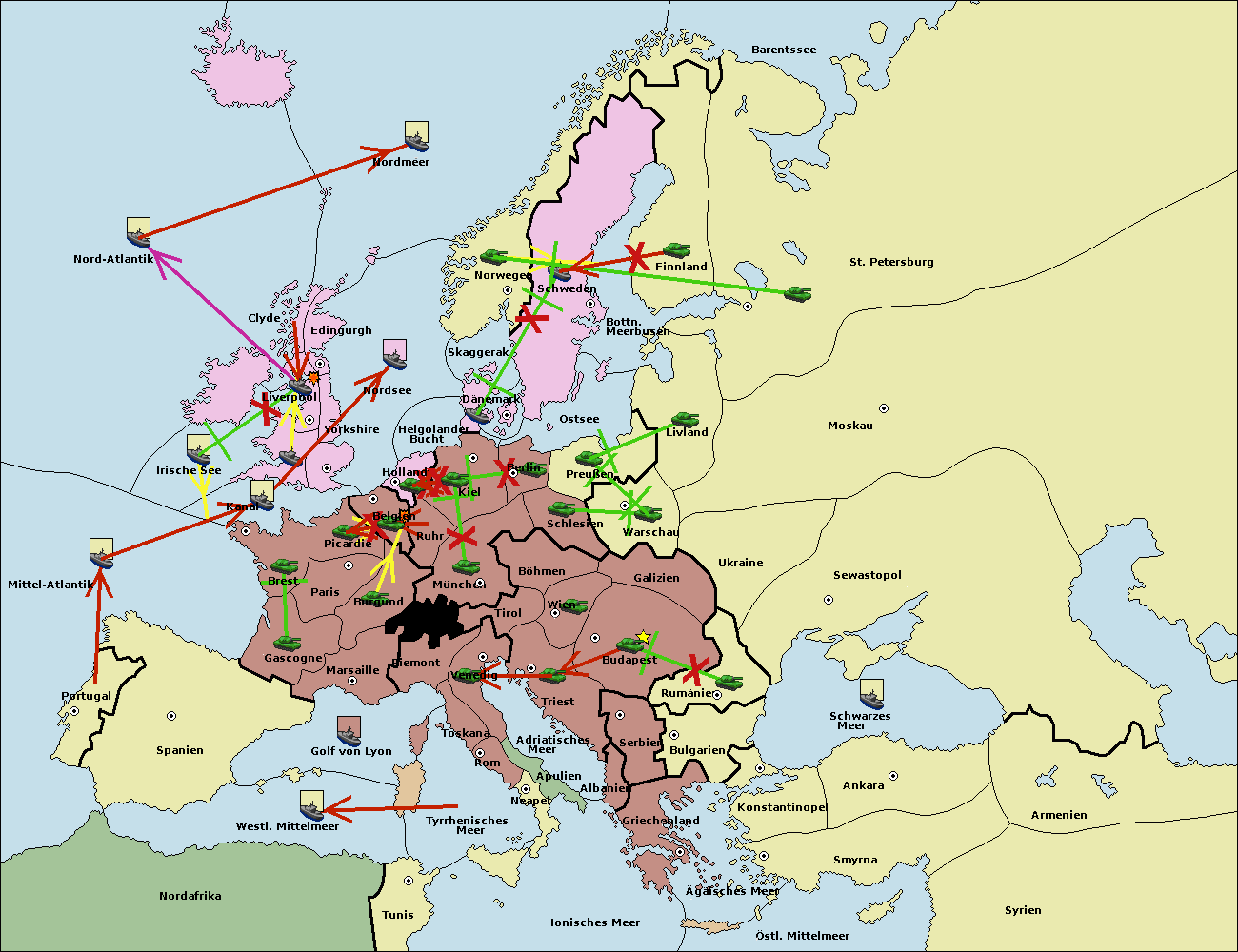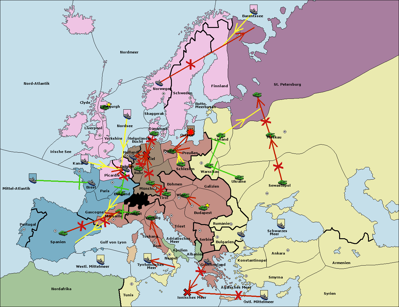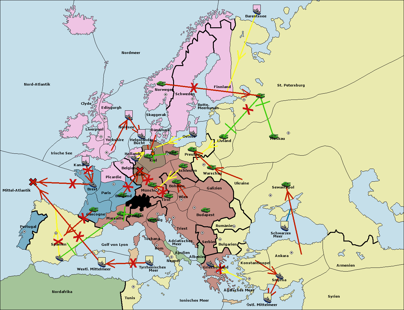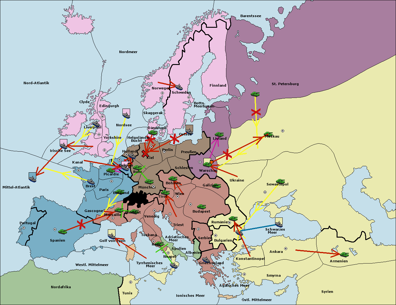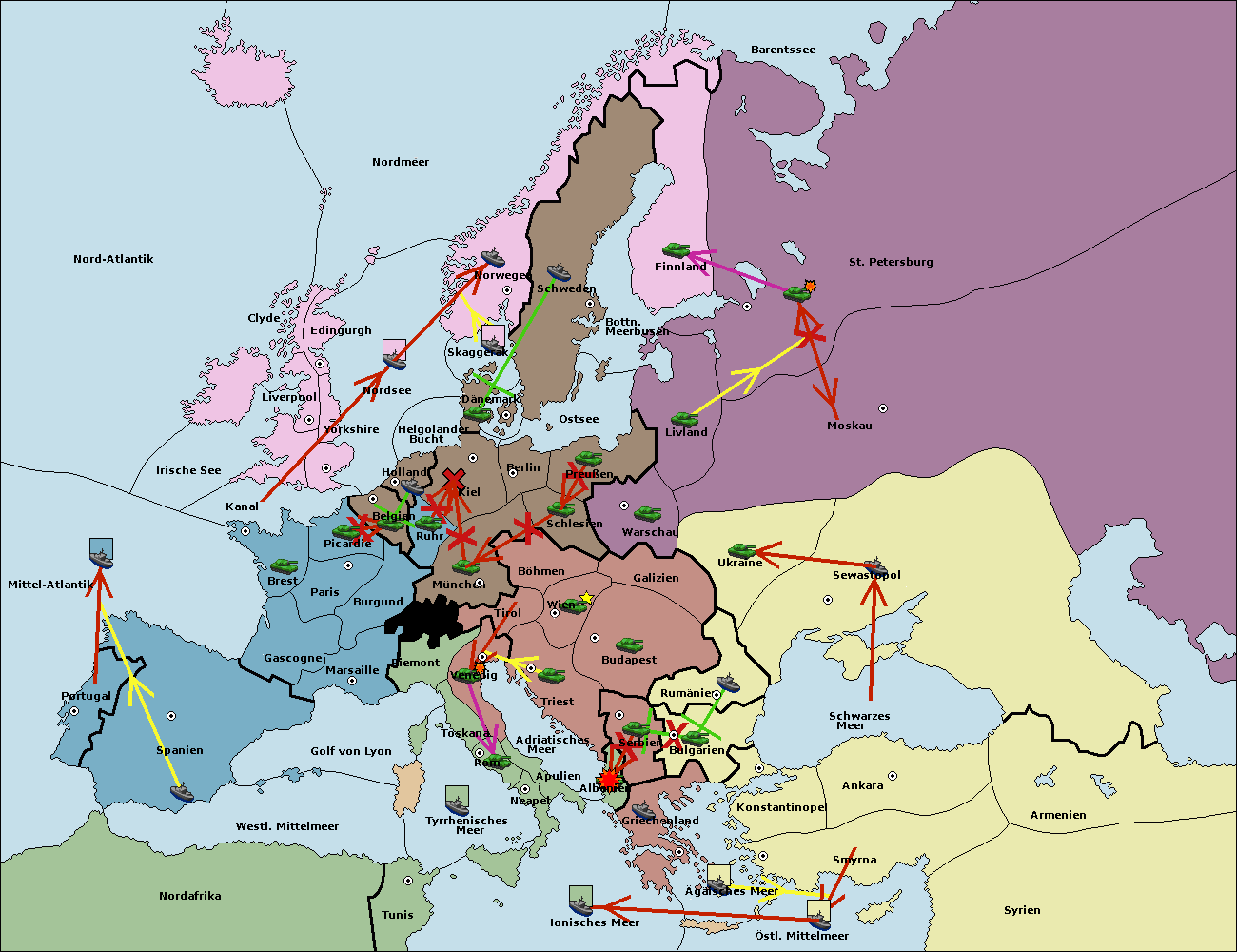• Die Armee in Kiel support move nach Holland von Belgien. (gescheitert)