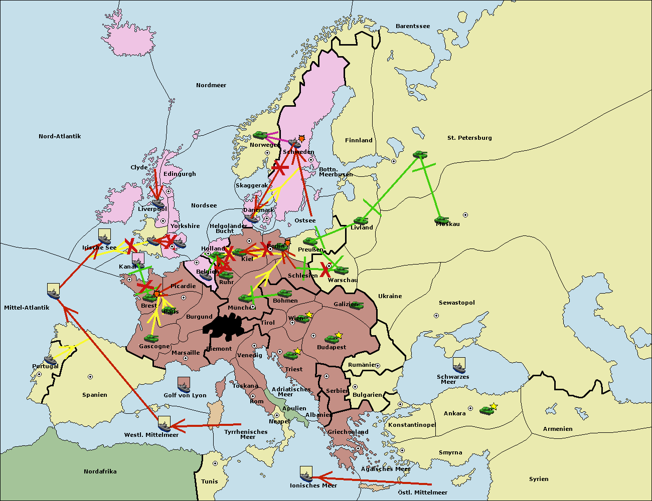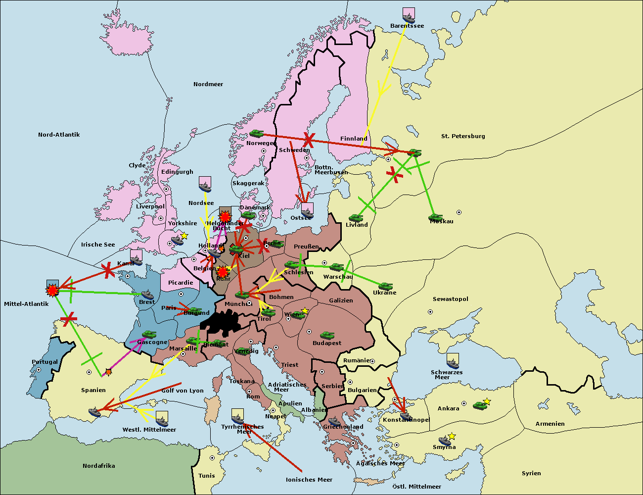 • Die Flotte in Konstantinopel support hold nach Bulgarien.