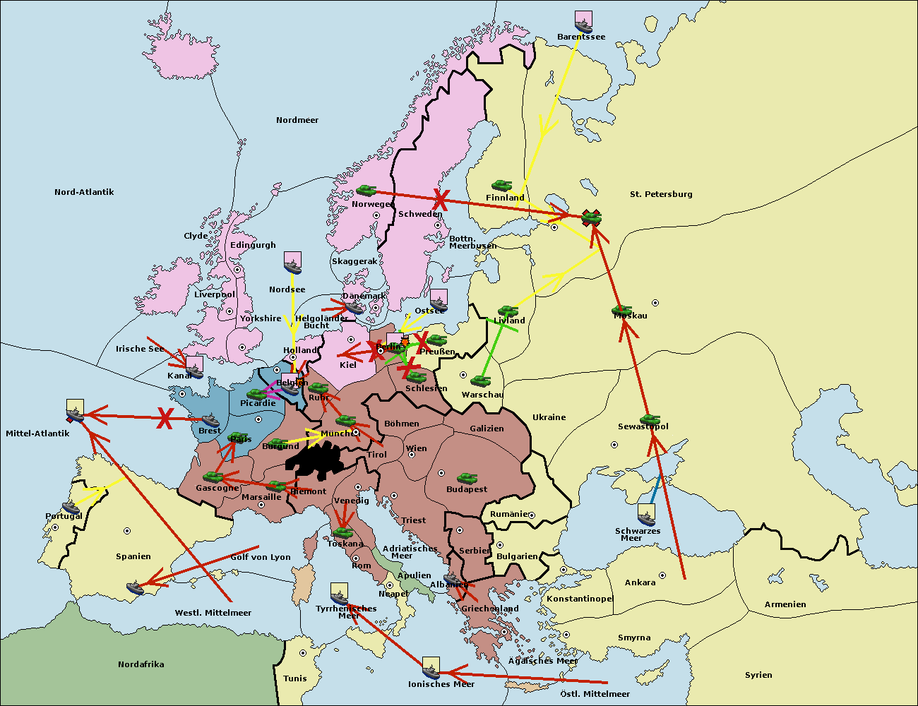 • Die Armee in München support hold nach Kiel.