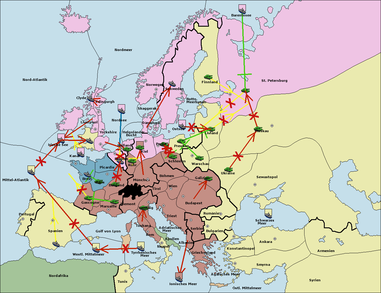 • Die Armee in Triest support move nach Tirol von Wien.