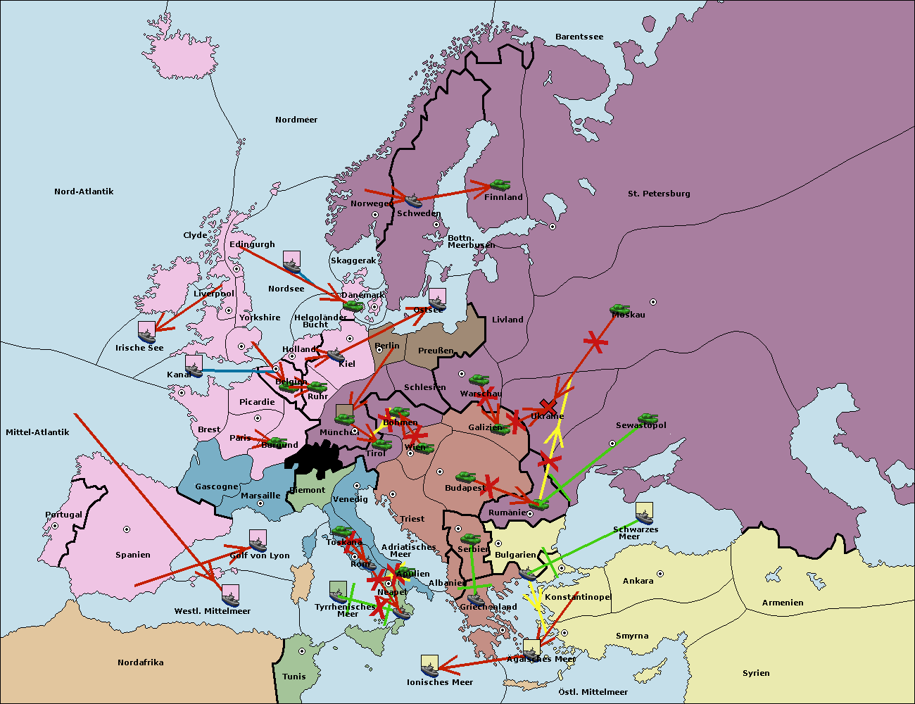 • Die Armee in Bulgarien support move nach Rumänien von Sewastopol. (gescheitert)