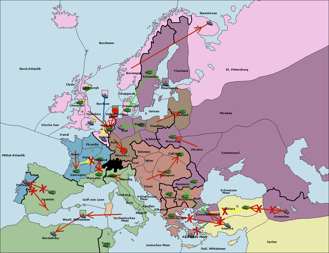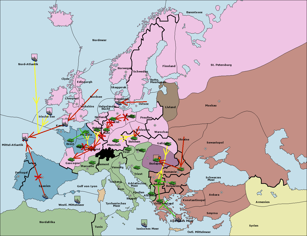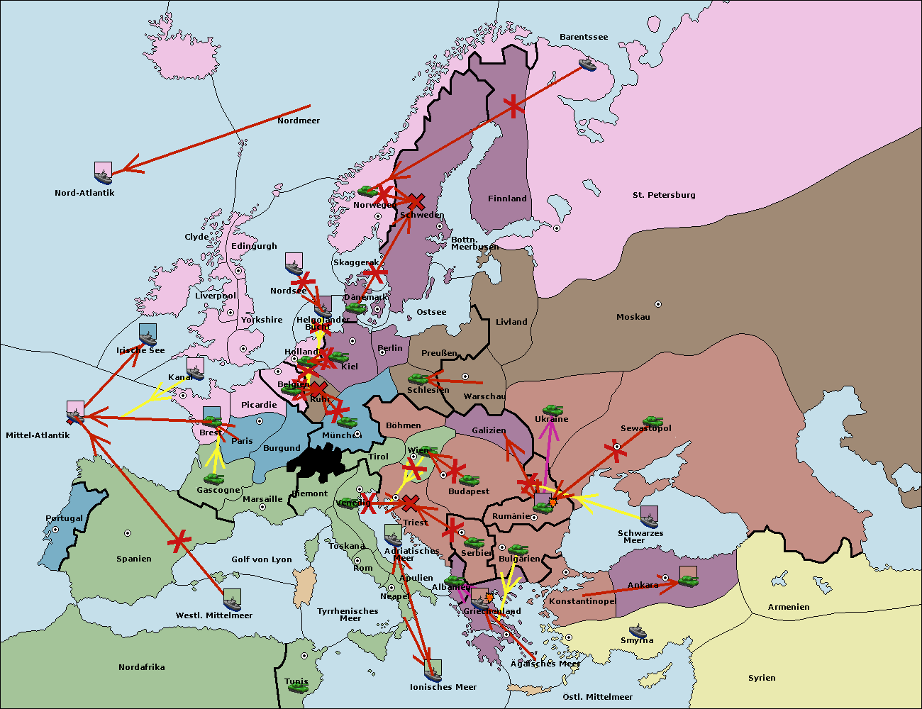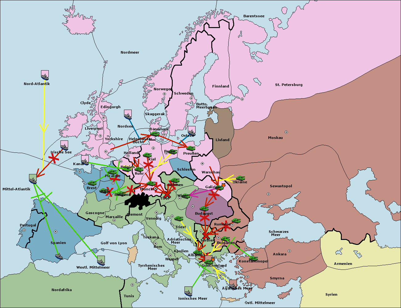 • Die Armee in Bulgarien wird zerstörtFlotte in Bulgarien gebaut.