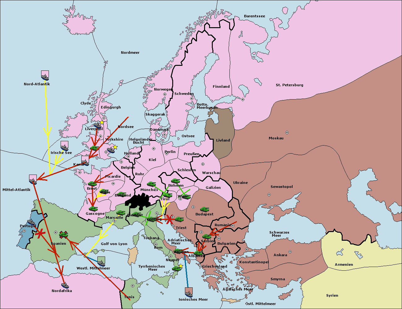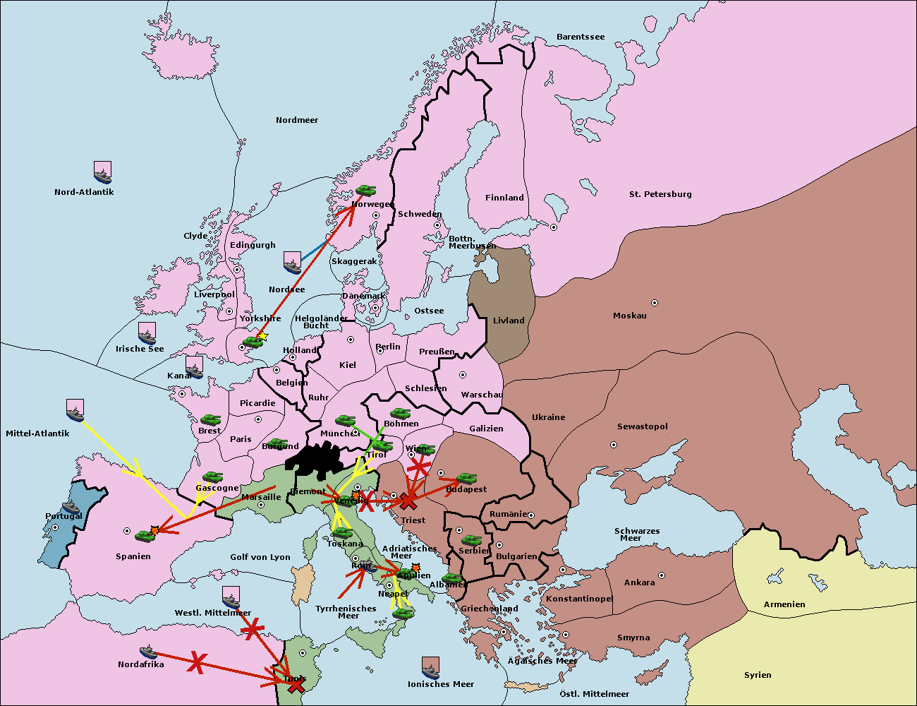 • Die Flotte in Nord Afrika move nach Tunis. (gescheitert)