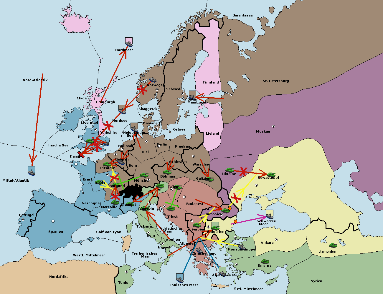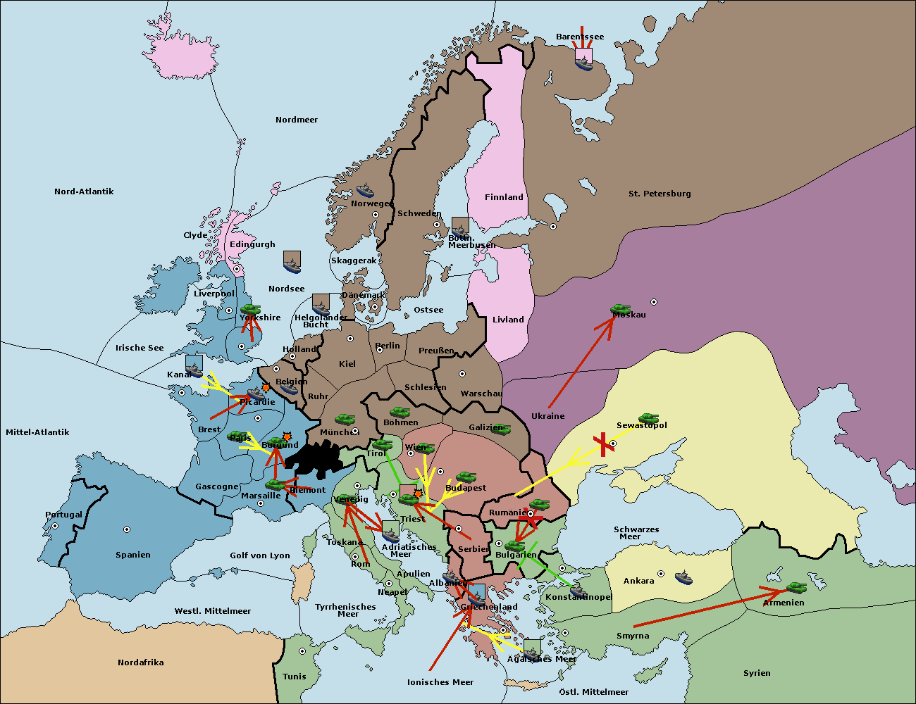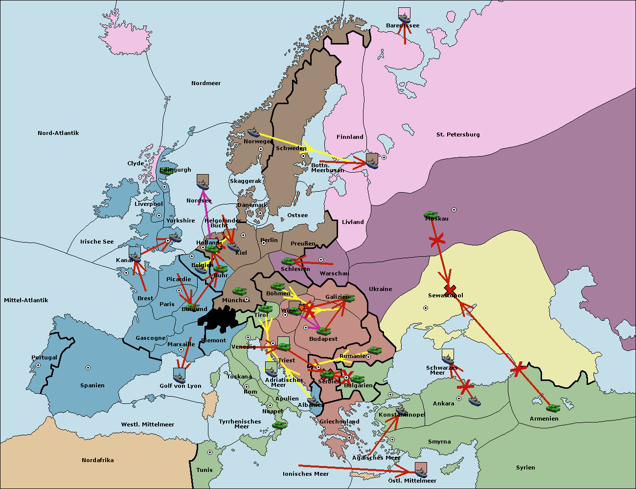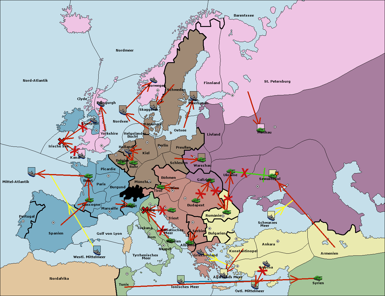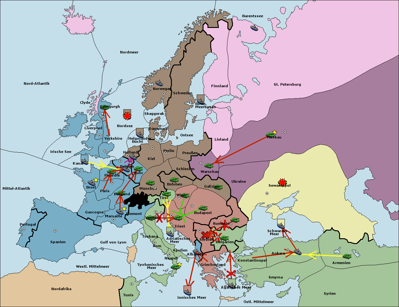 • Die Armee in Warschau support move nach Moskau von Sewastopol.