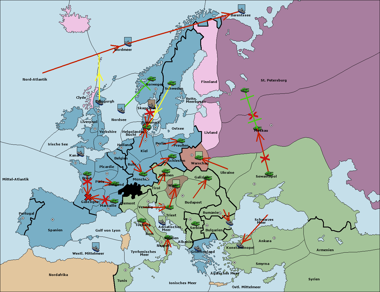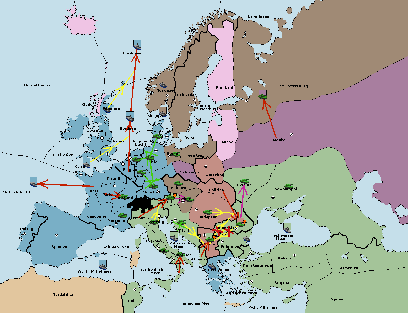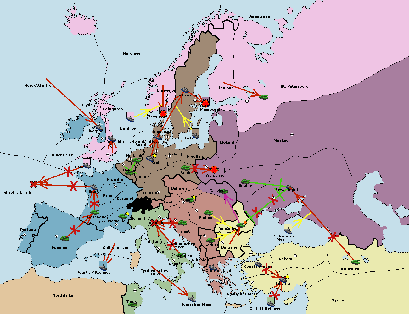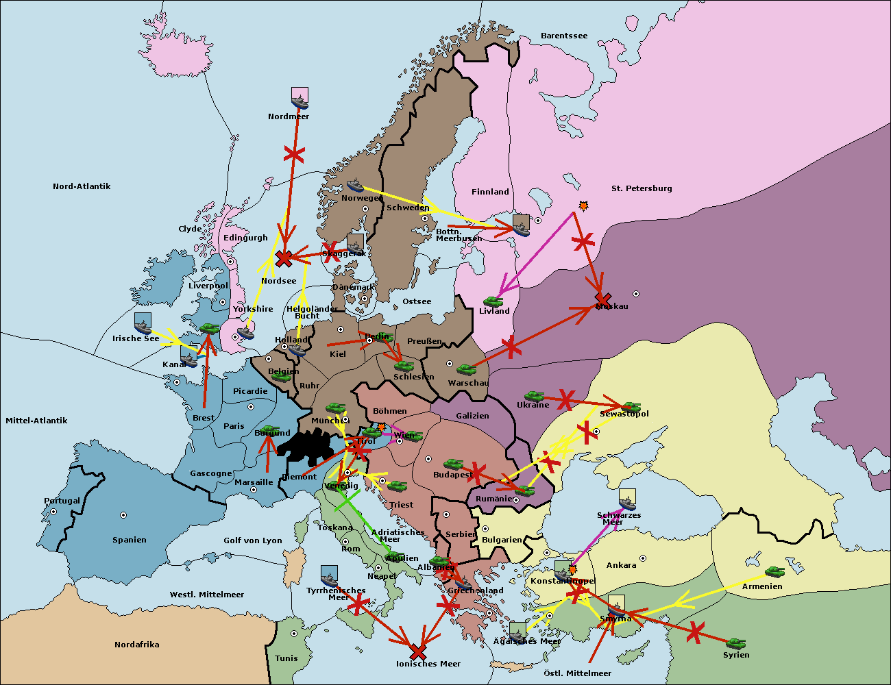 • Die Armee in Warschau support move nach Moskau von Sewastopol.