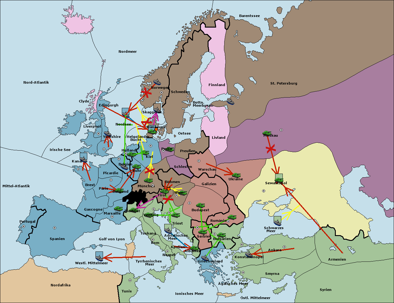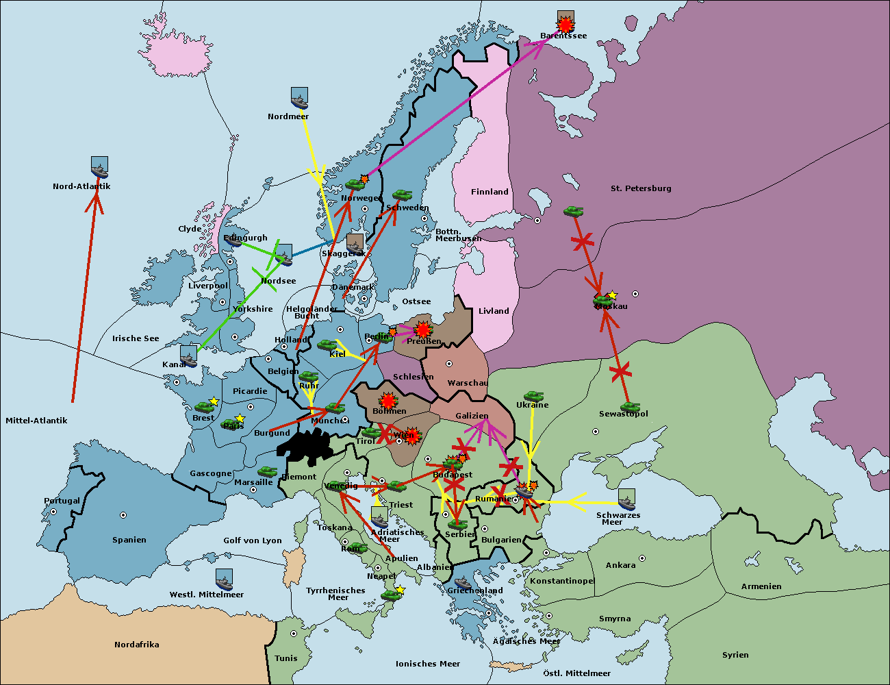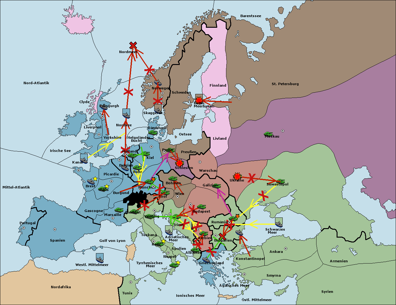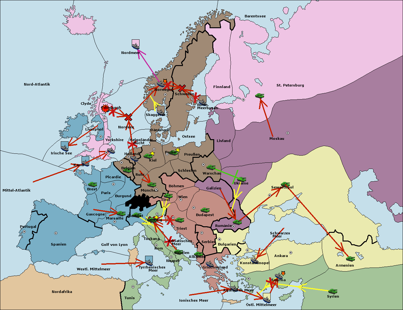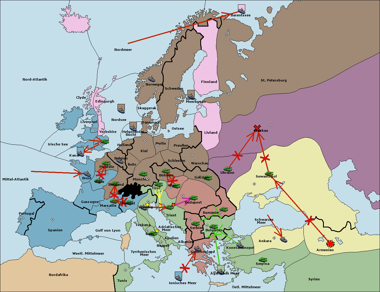 • Die Armee in Warschau support move nach Moskau von Sewastopol.