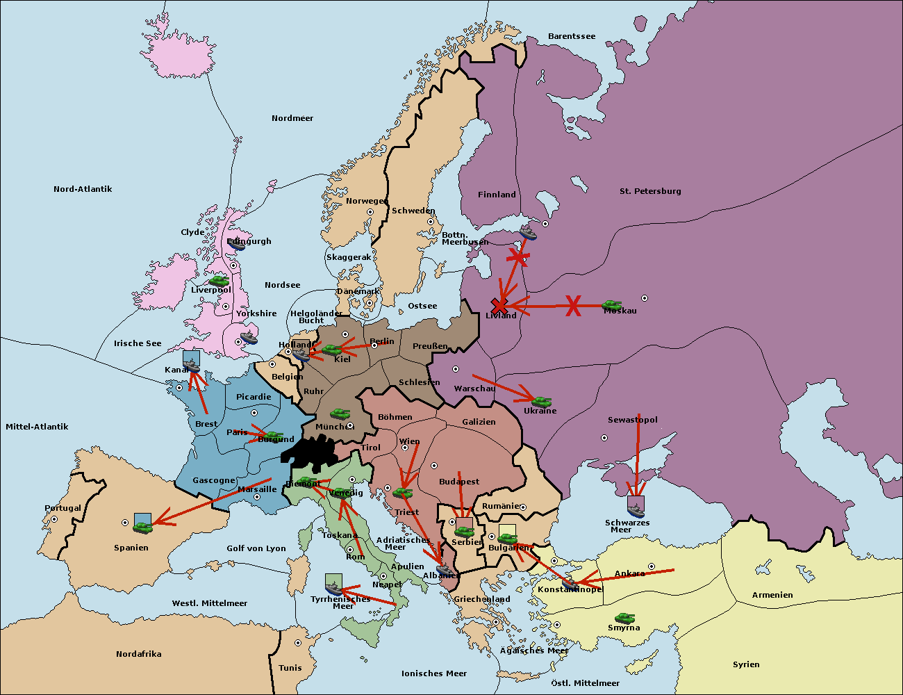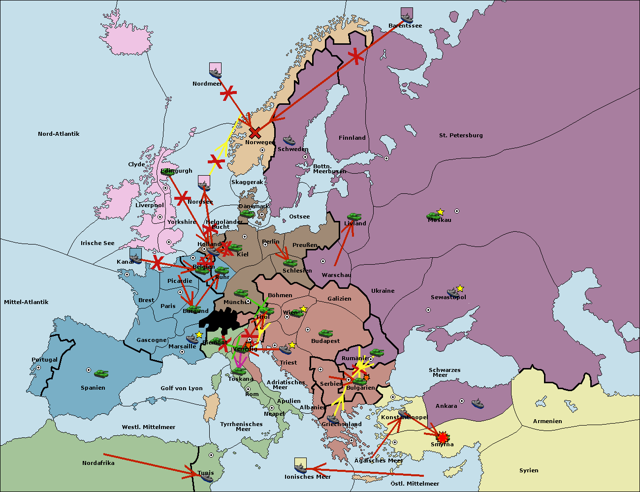 • Die Flotte in Barentssee move nach St. Petersburg (Nordküste). (gescheitert)