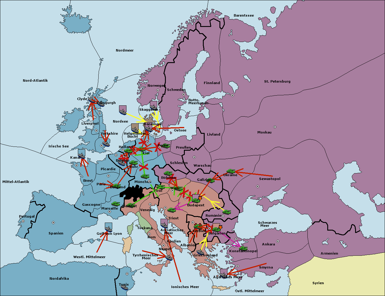 • Die Flotte in Bulgarien (Südküste) wird zerstörtFlotte in Bulgarien (Südküste) gebaut.