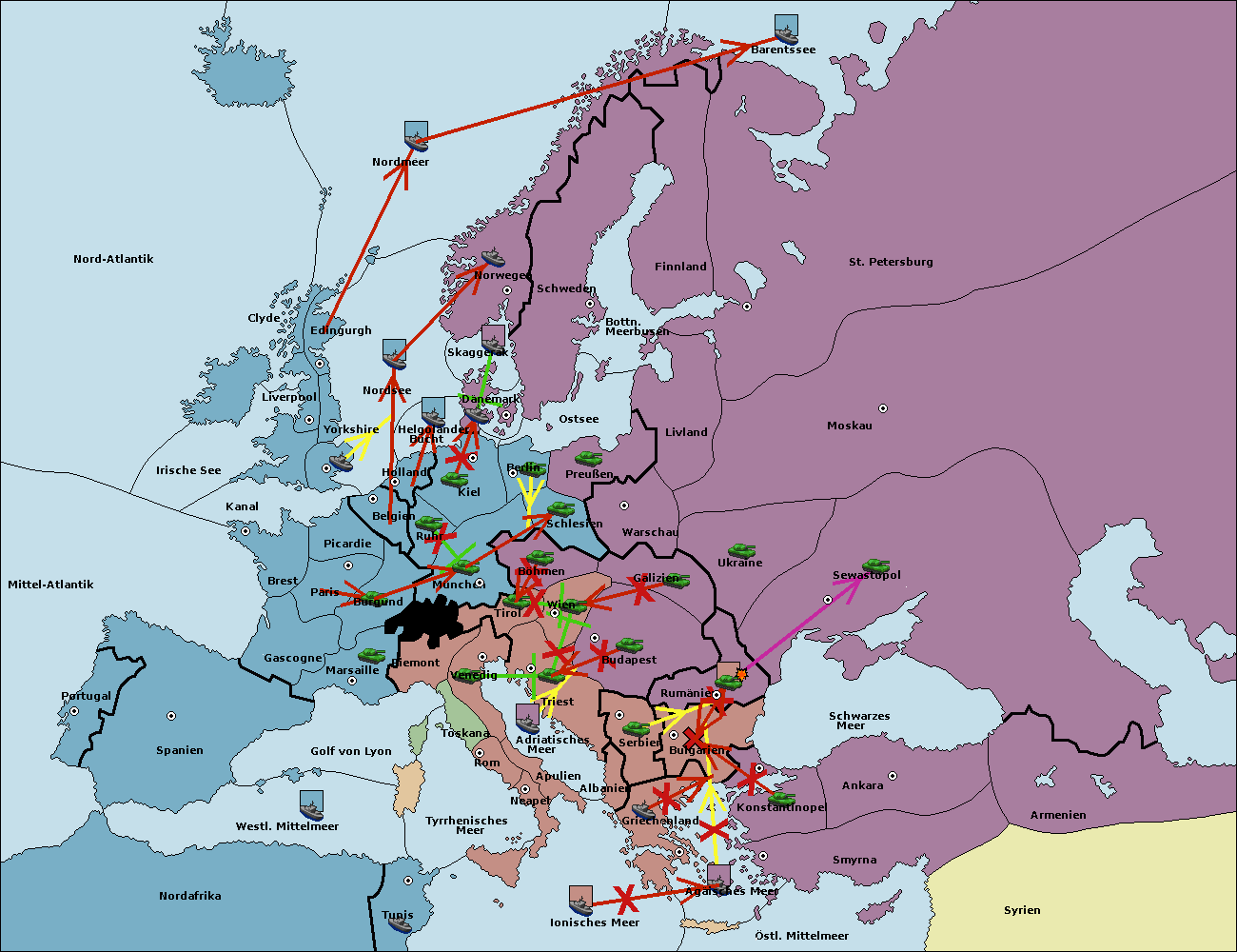 • Die Flotte in St. Petersburg (Nordküste) move nach Barentssee.