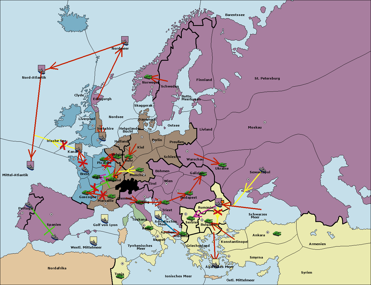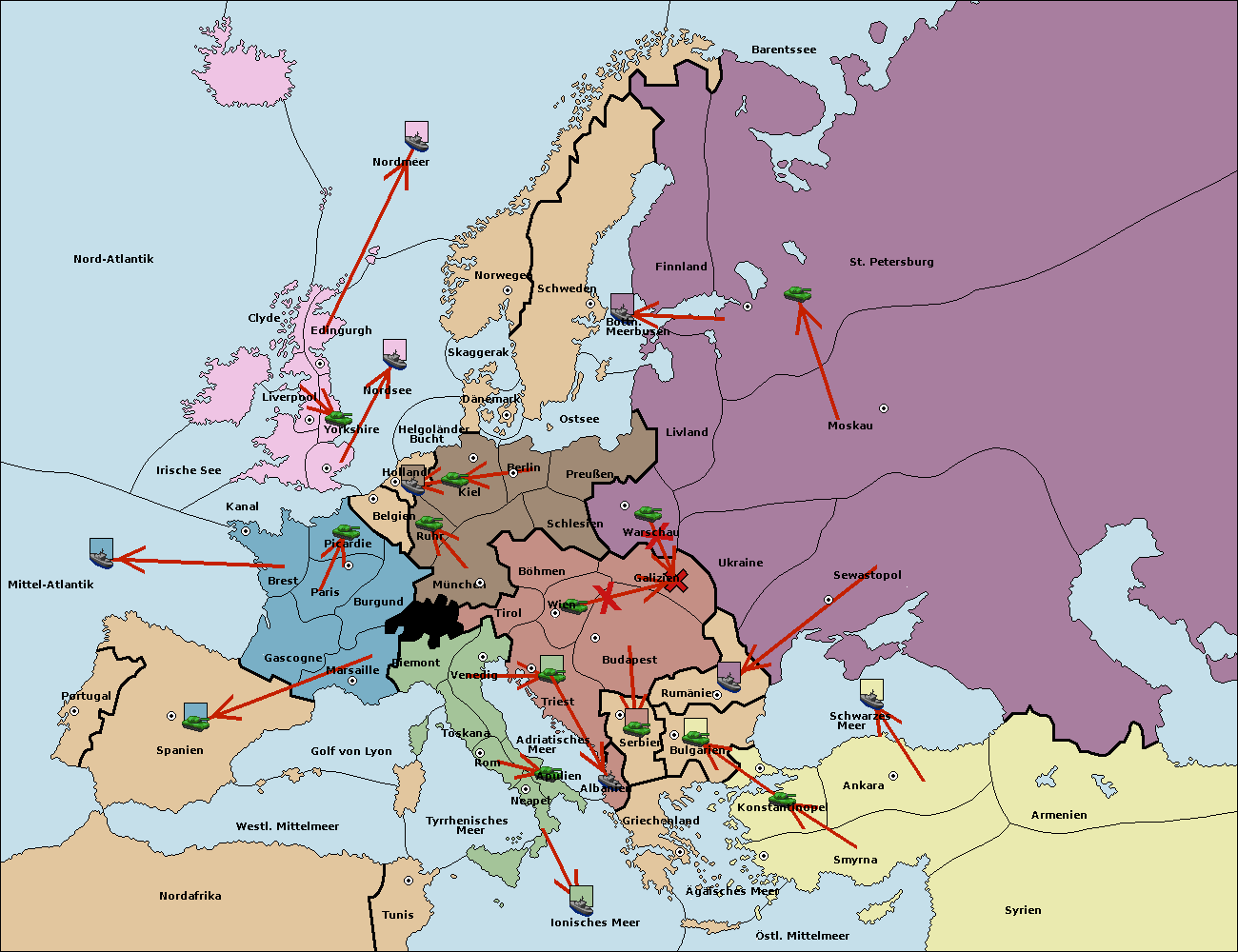 • Die Flotte in Konstantinopel support hold nach Bulgarien.