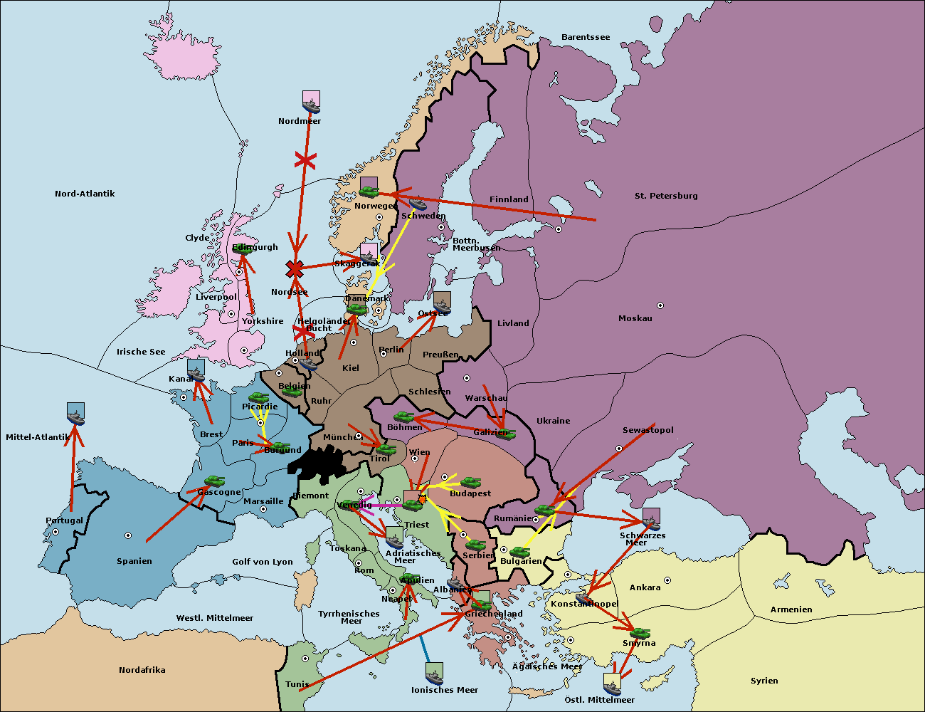 • Die Armee in Budapest support move nach Triest von Wien.