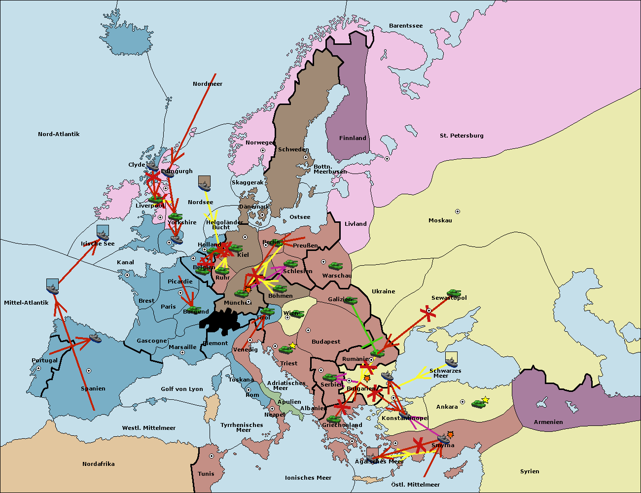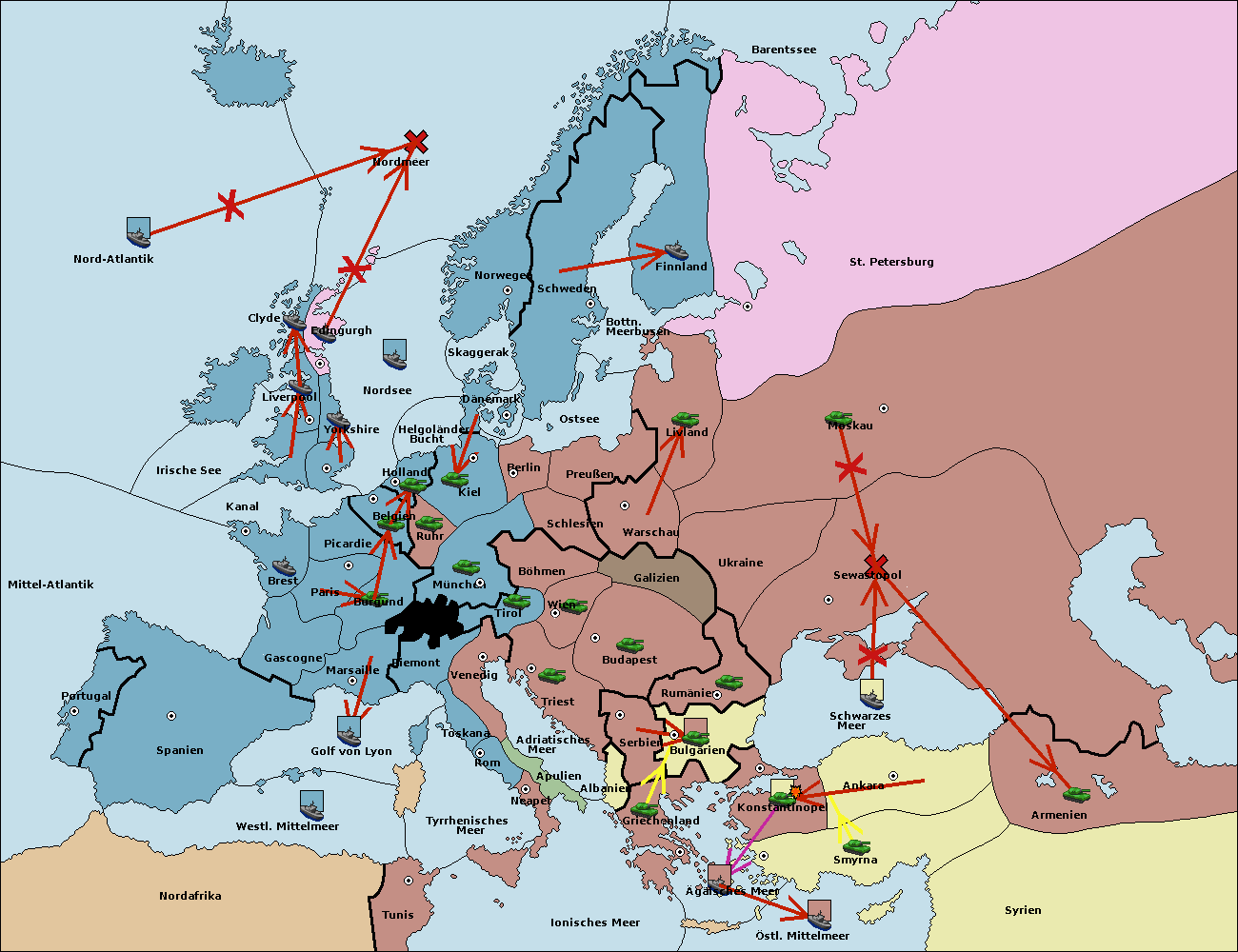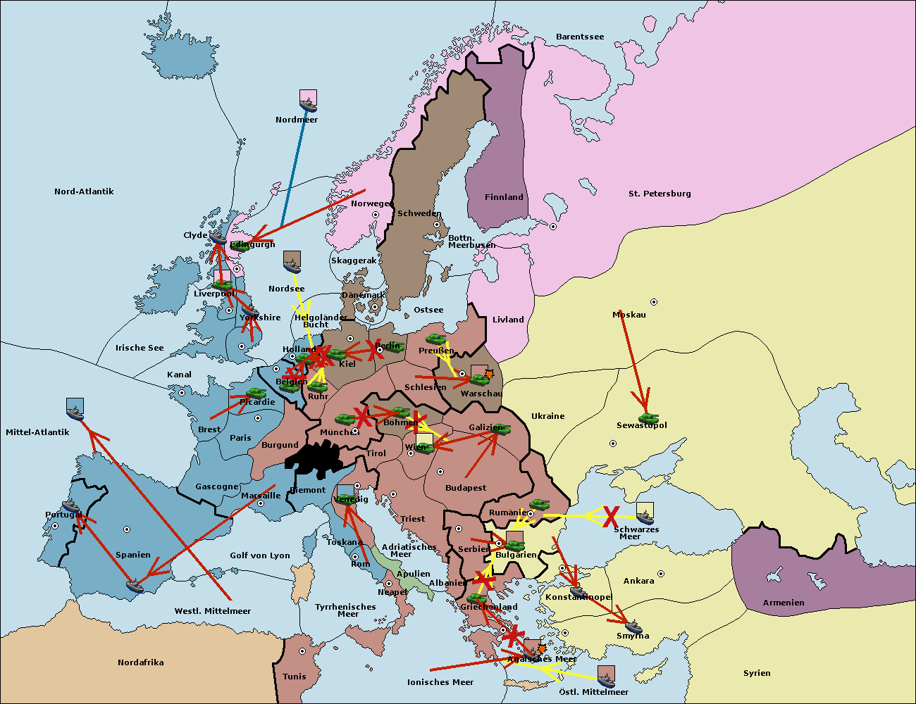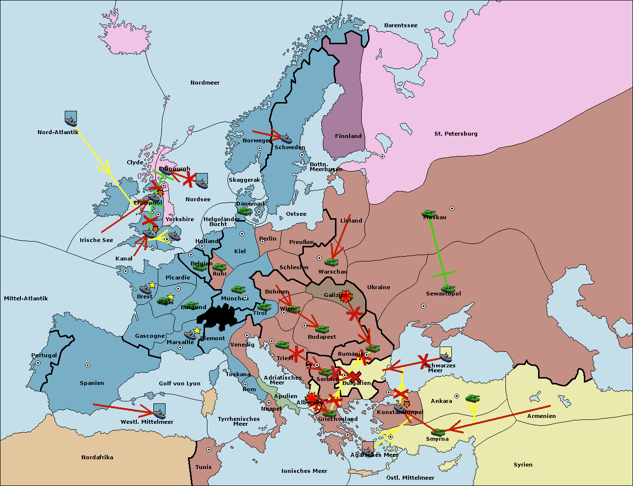 • Die Armee in Bulgarien wird zerstörtFlotte in Bulgarien gebaut.