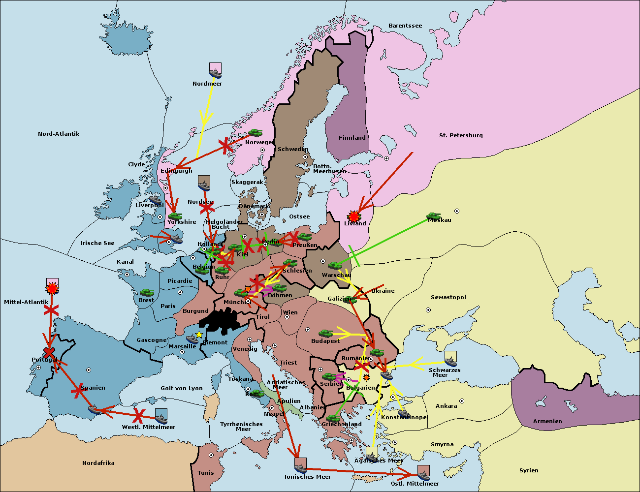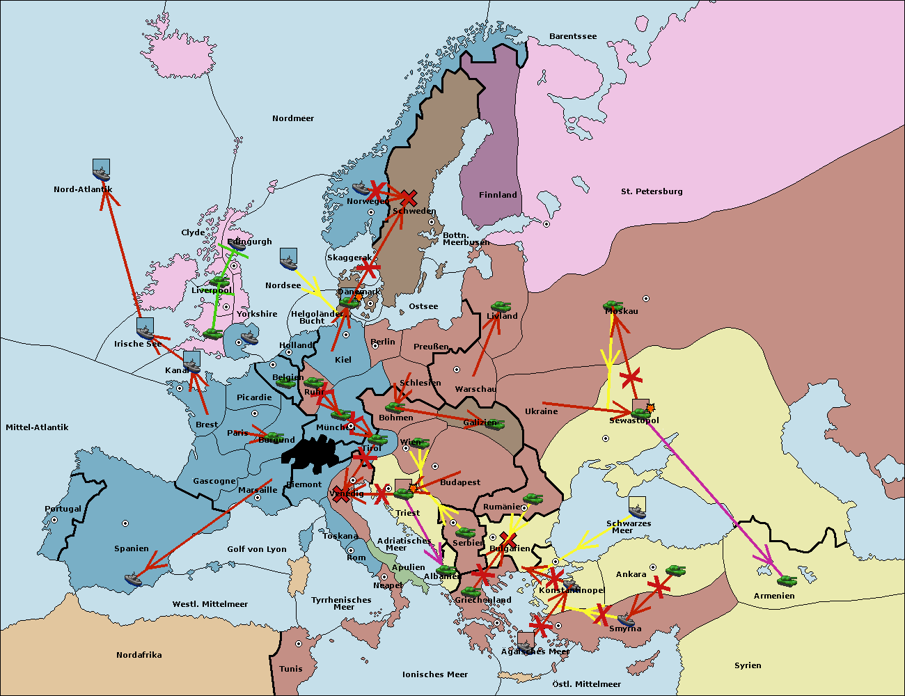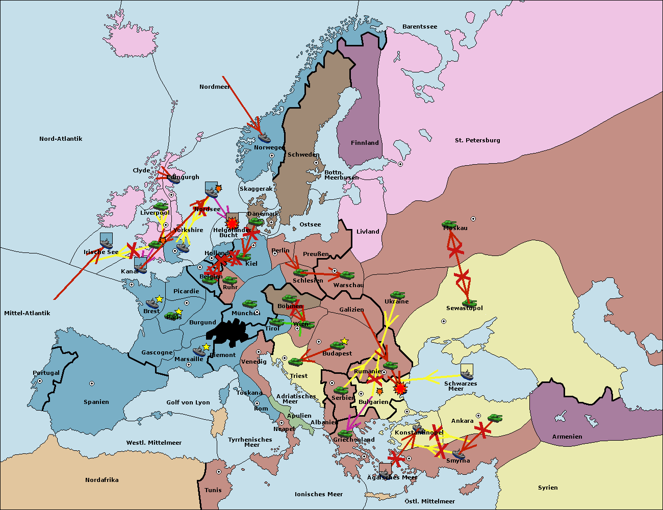 • Die Armee in Bulgarien wird zerstörtFlotte in Bulgarien gebaut.