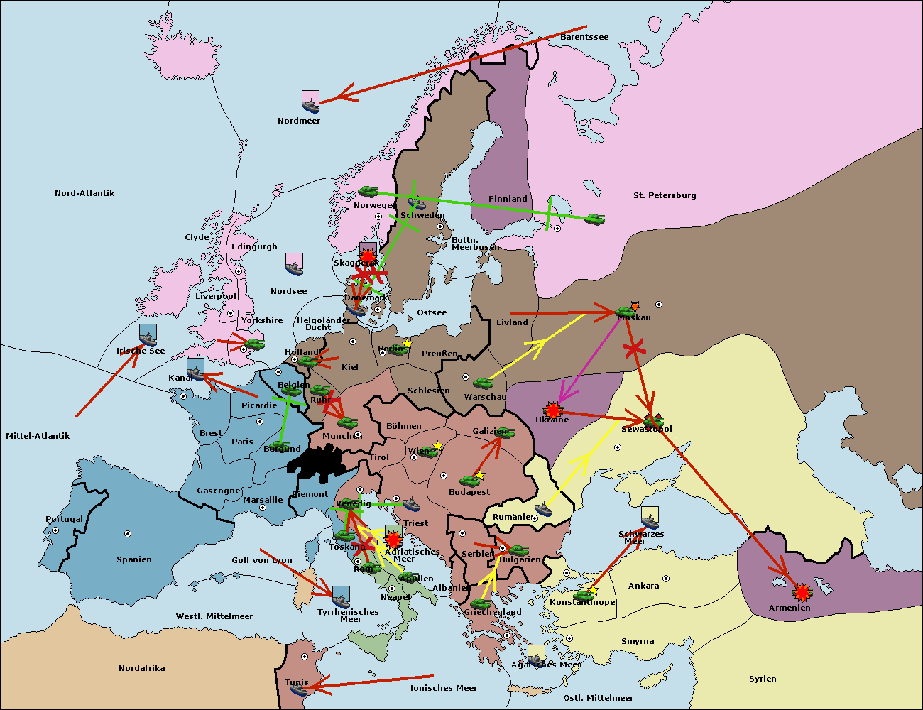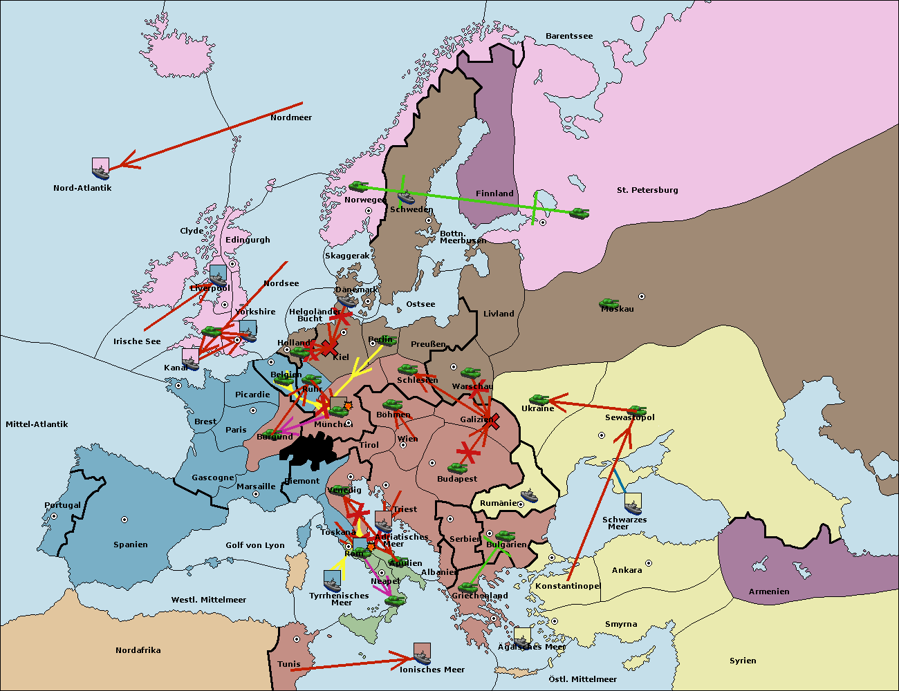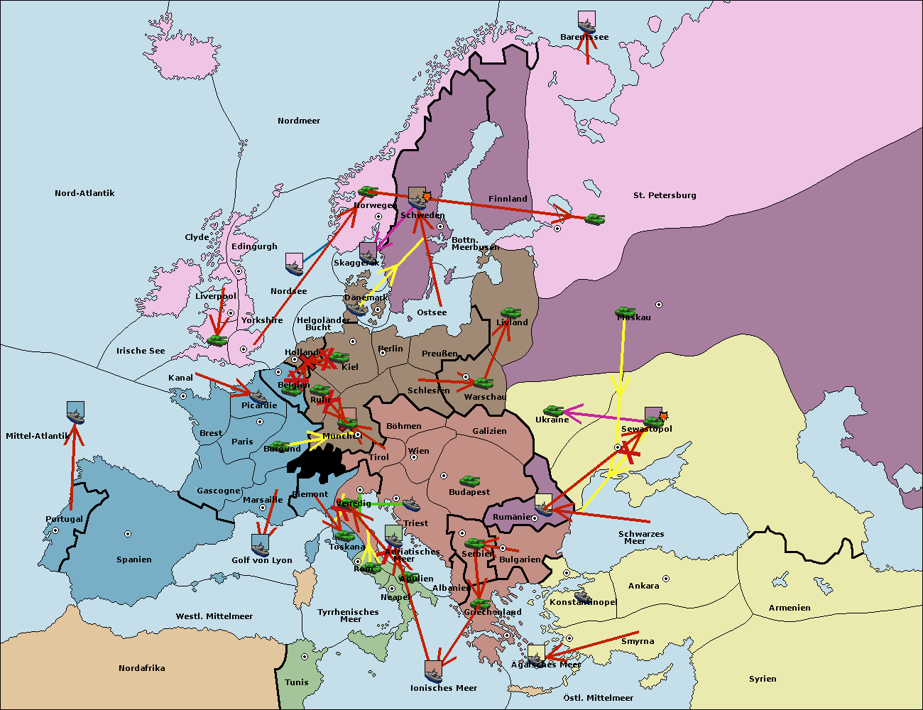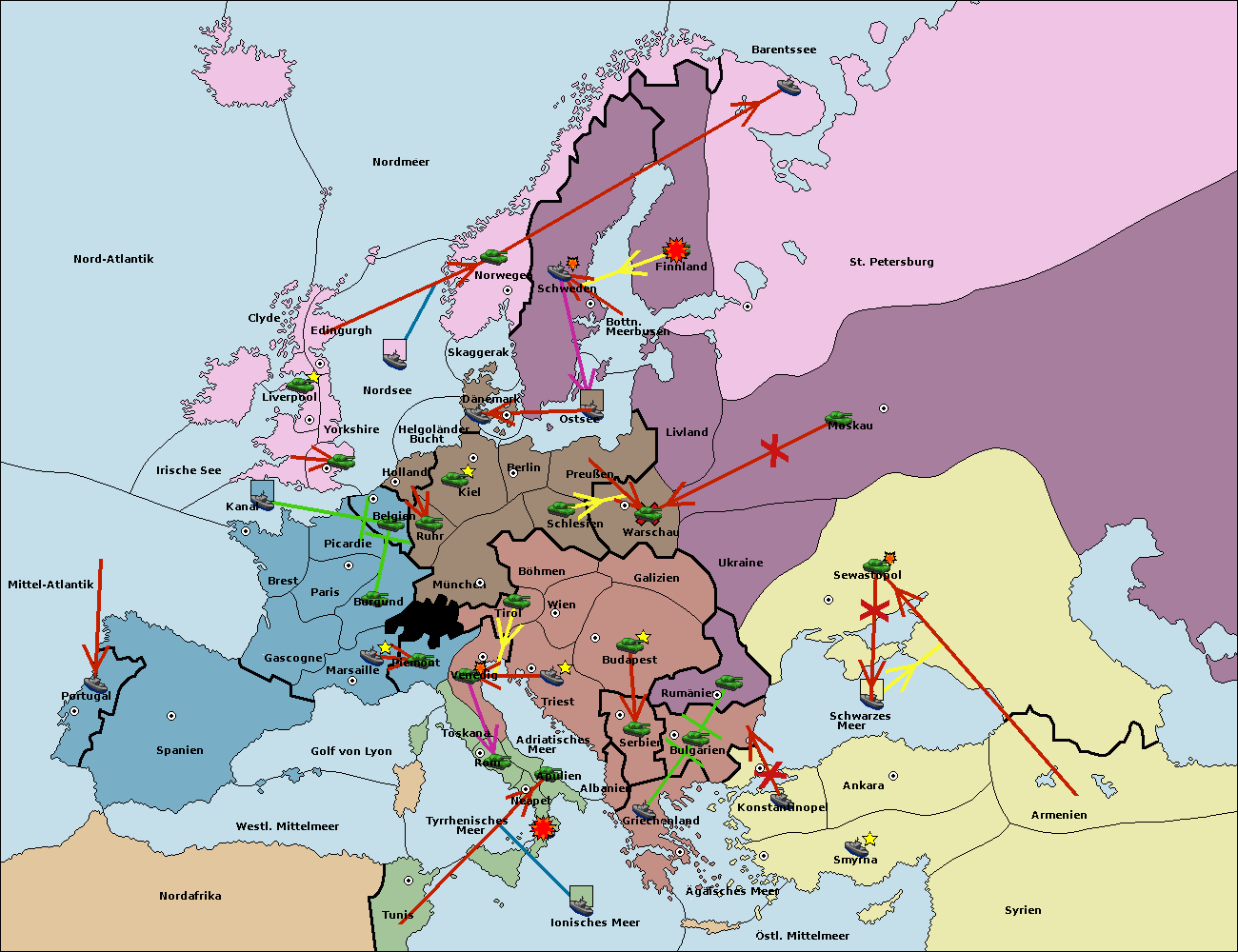• Die Armee in Bulgarien wird zerstörtFlotte in Bulgarien gebaut.