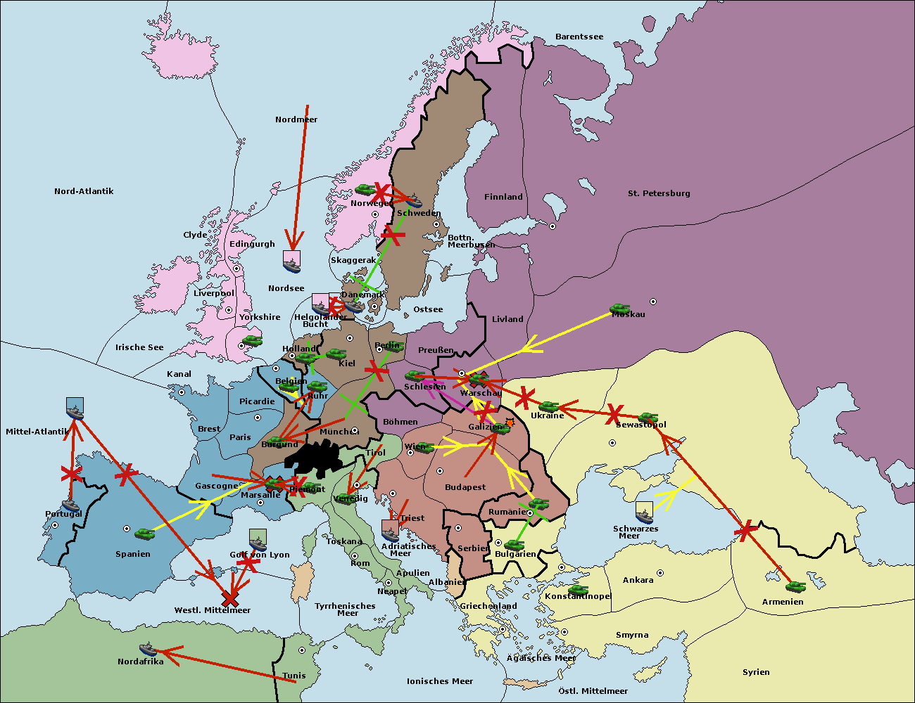 • Die Flotte in westl. Mittelmeer move nach Spanien (Südküste). (gescheitert)