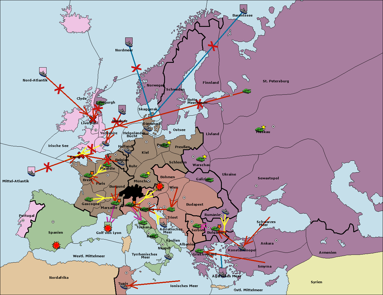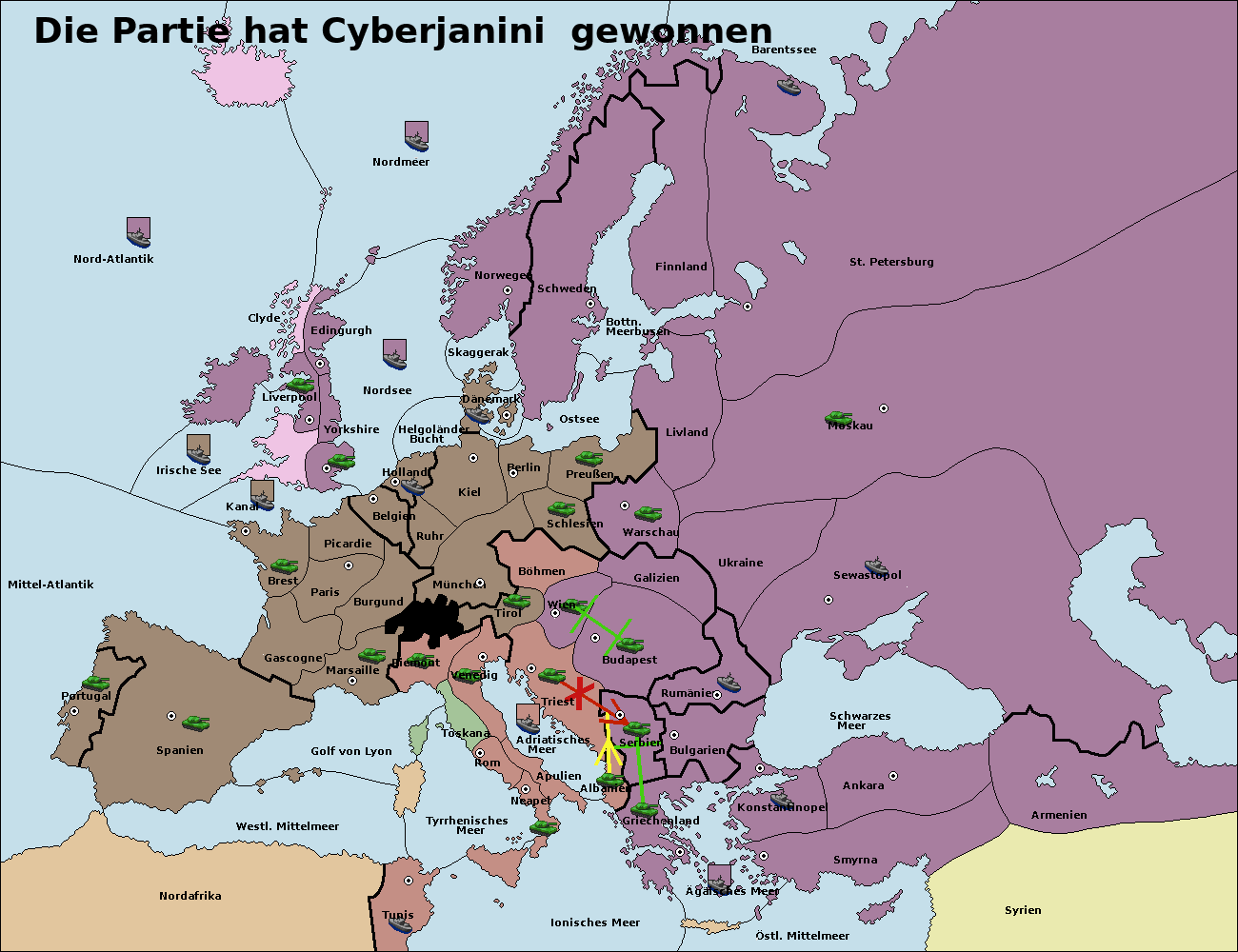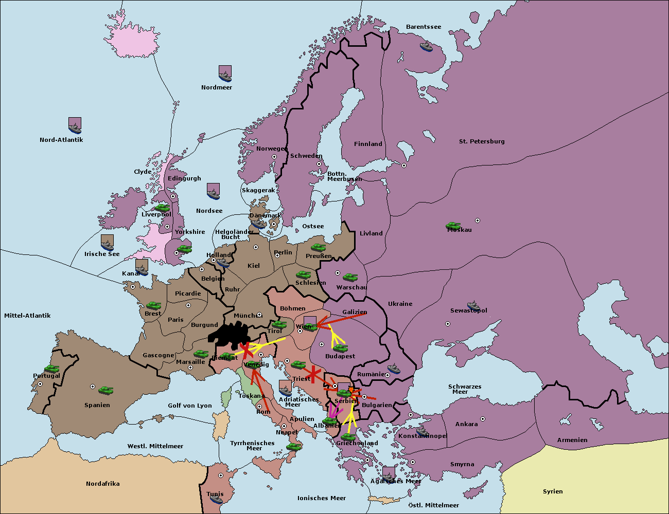 • Die Armee in Bulgarien wird zerstörtFlotte in Bulgarien gebaut.