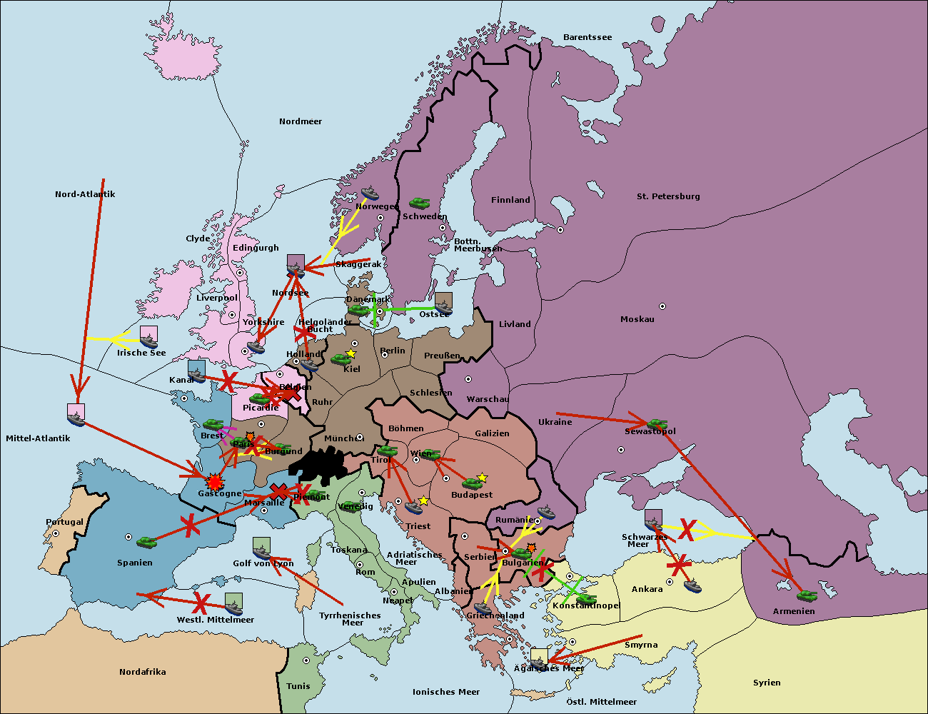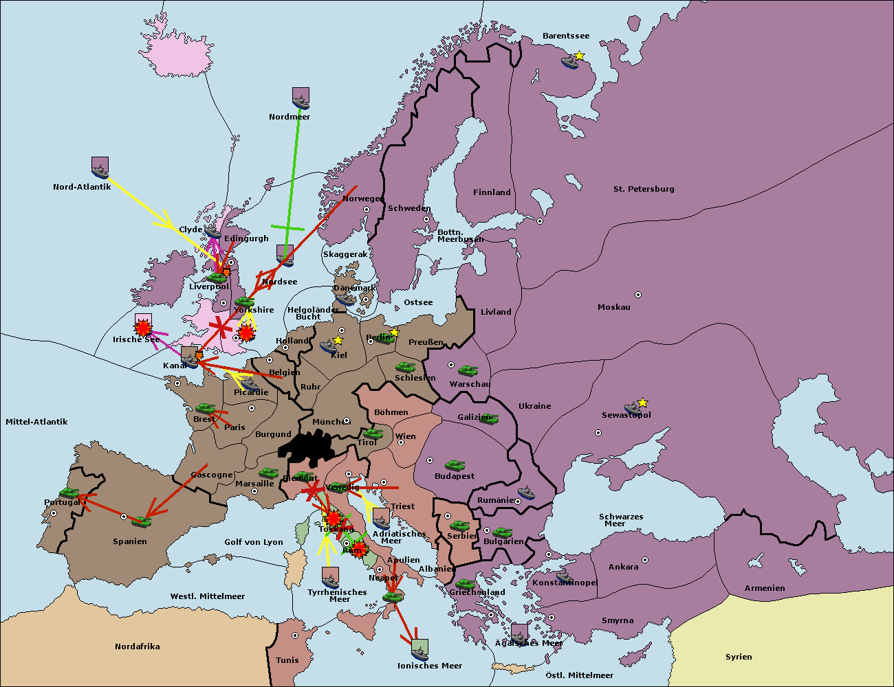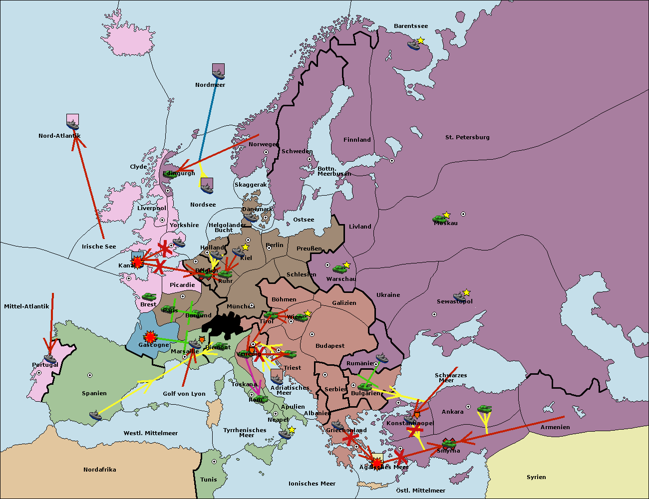 • Die Armee in Bulgarien wird zerstörtFlotte in Bulgarien gebaut.