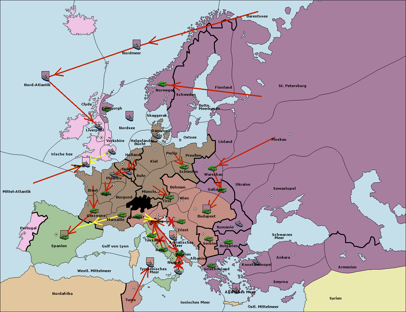 • Die Flotte in St. Petersburg (Nordküste) move nach Norwegen.