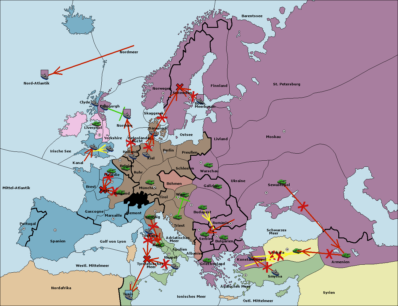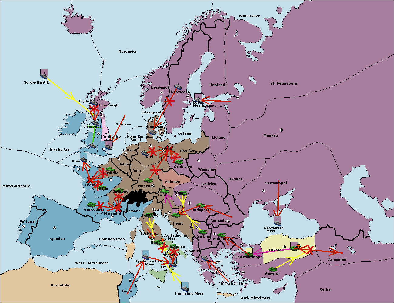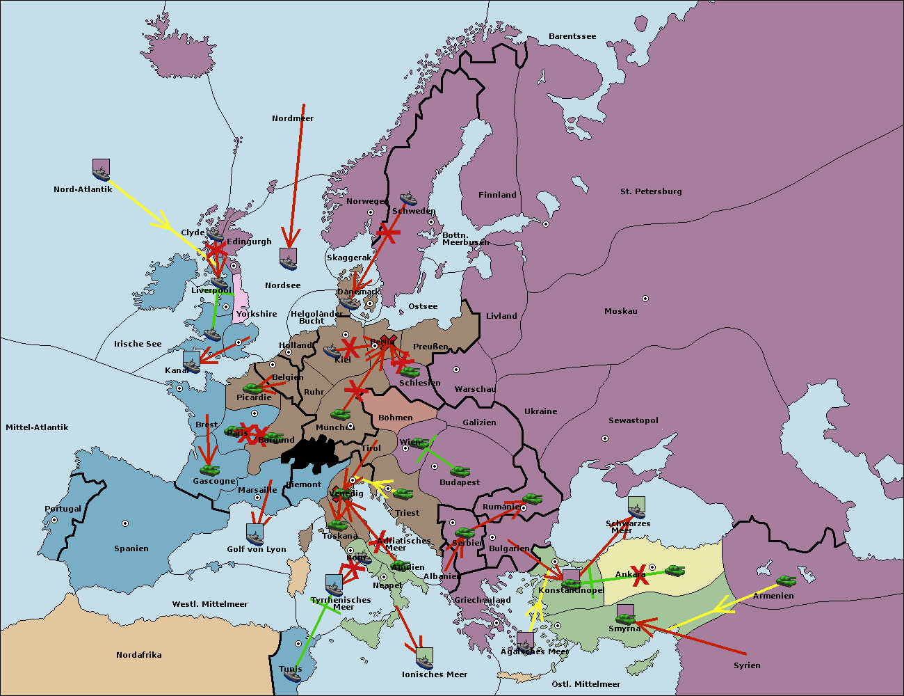 • Die Flotte in Schwarzes Meer support move nach Bulgarien von Rumänien. (gescheitert)