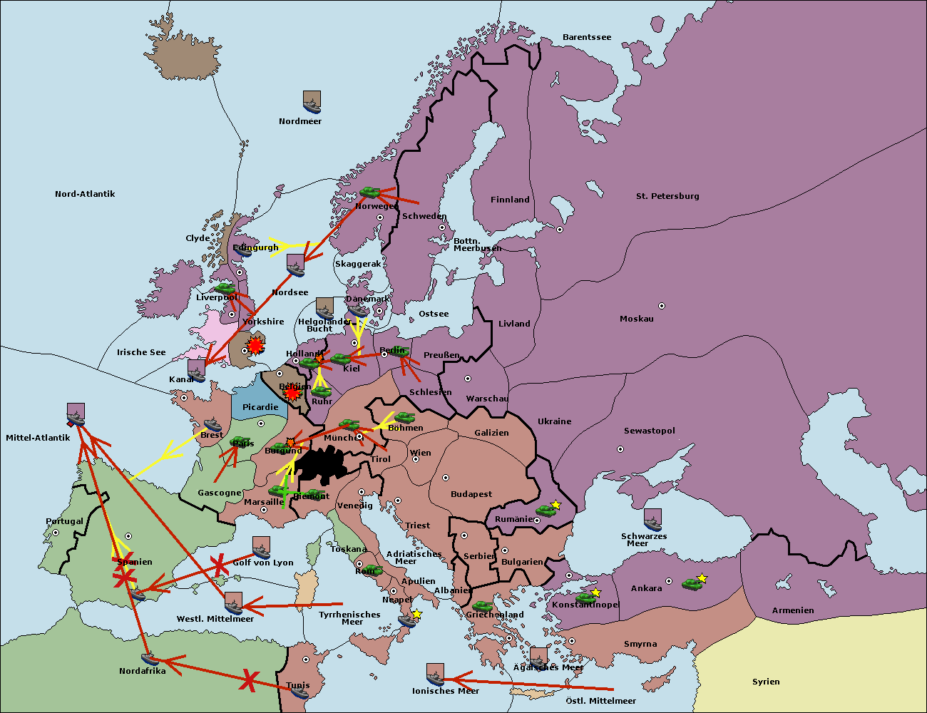 • Die Flotte in Tunis move nach Nord Afrika. (gescheitert)