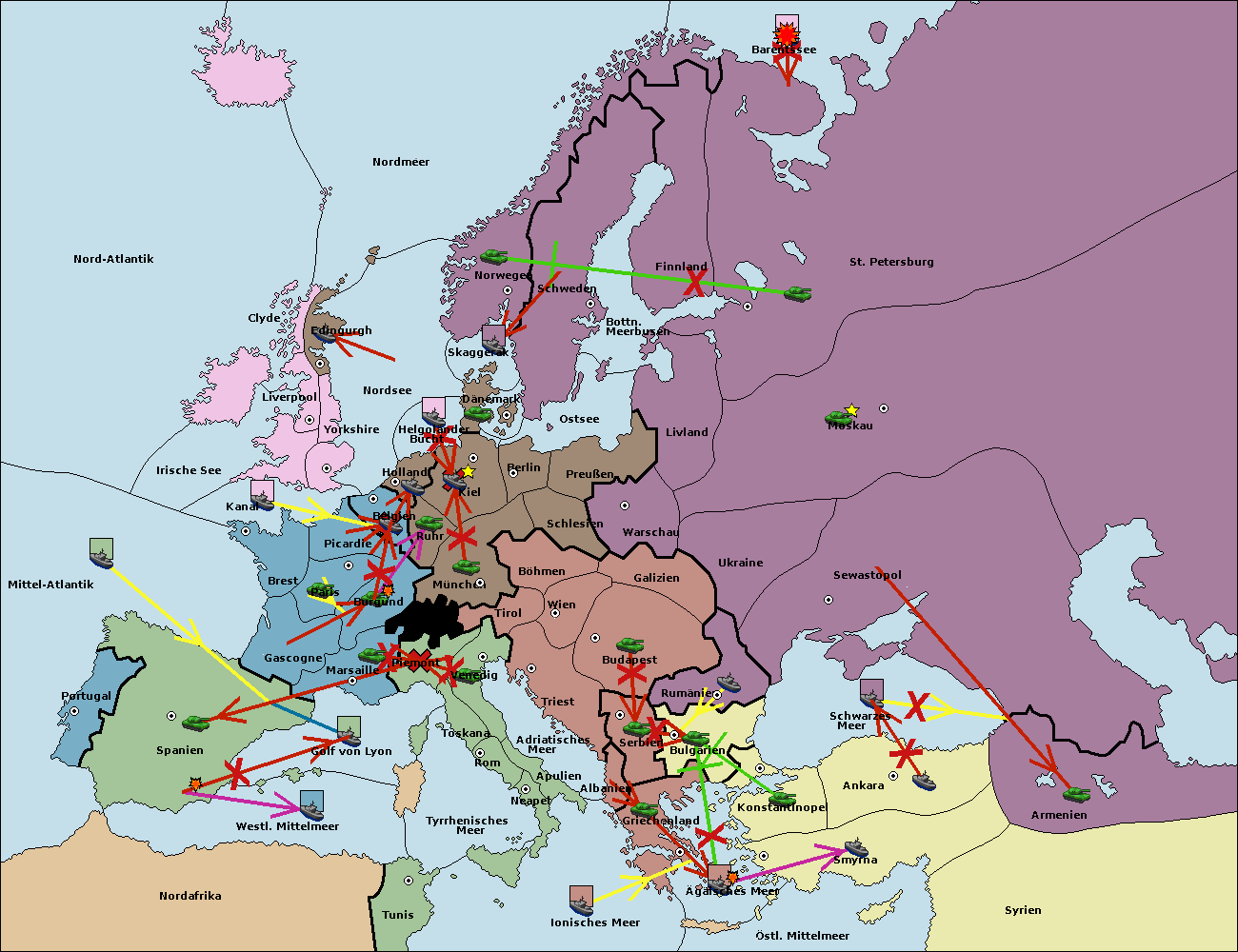 • Die Flotte in Schwarzes Meer support move nach Bulgarien von Serbien. (gescheitert)