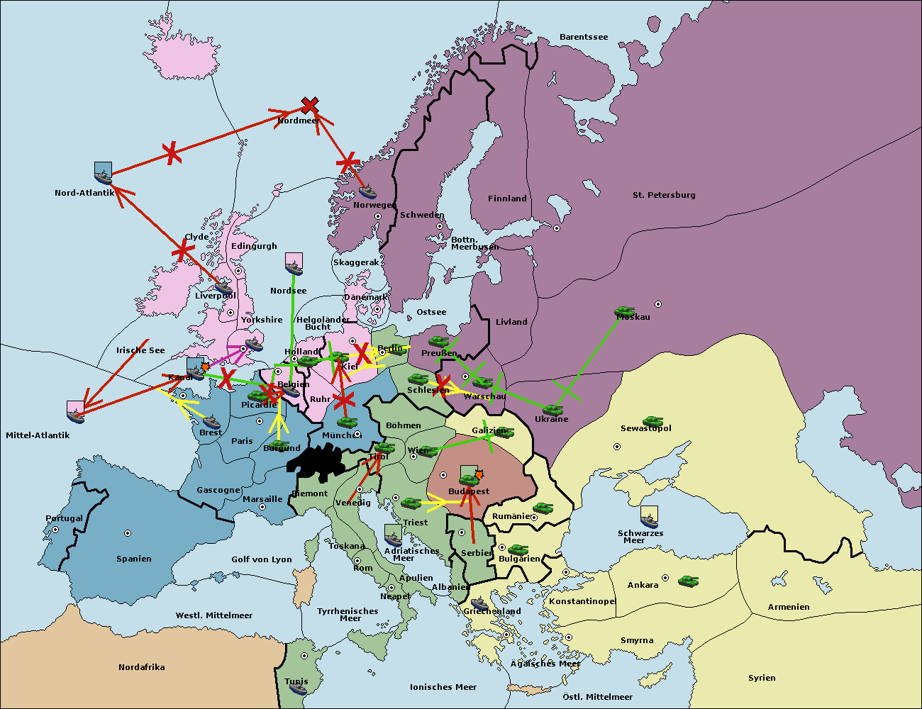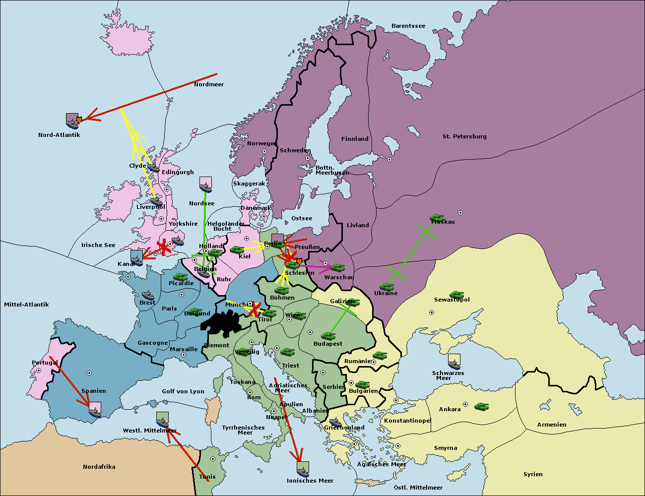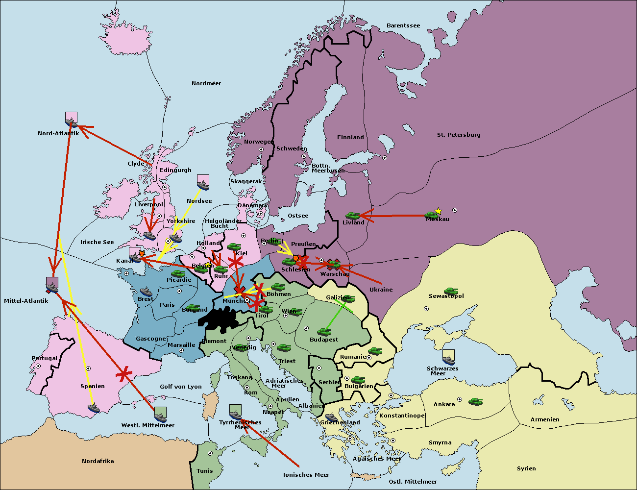 • Die Armee in Kiel support hold nach München. (gescheitert)