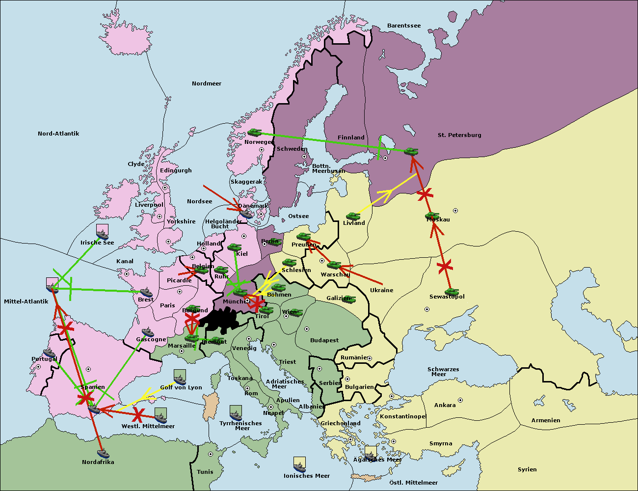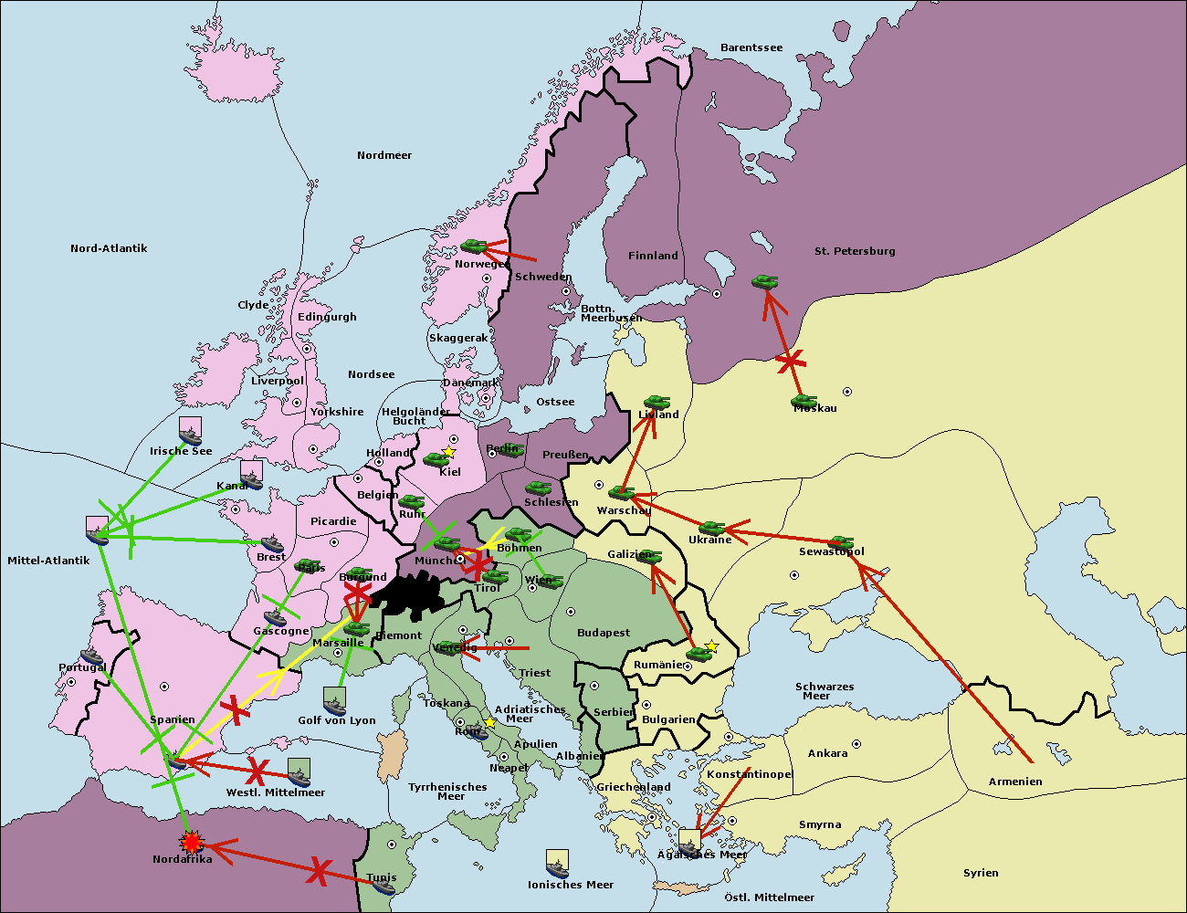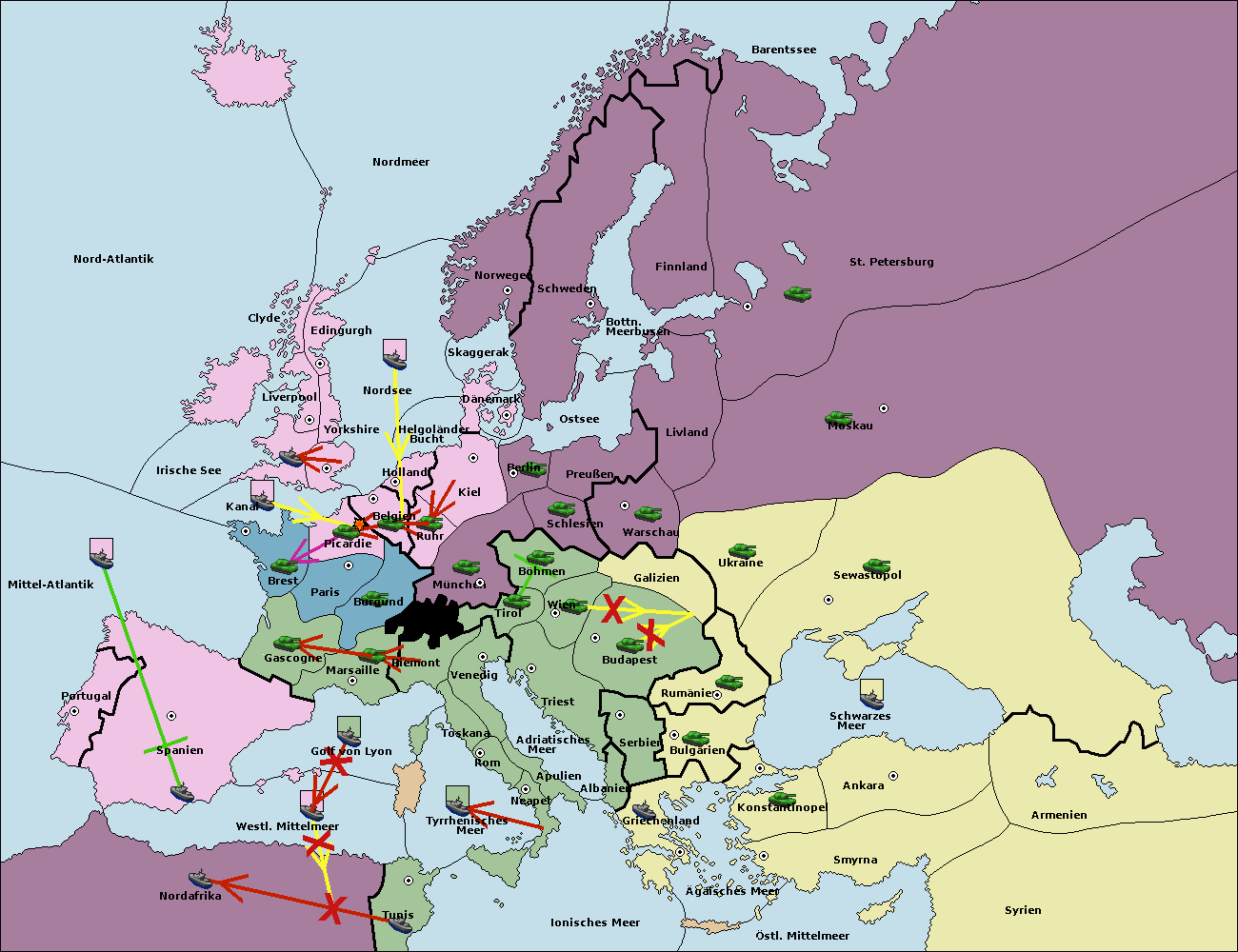 • Die Armee in Burgund support move nach München von Tirol. (gescheitert)