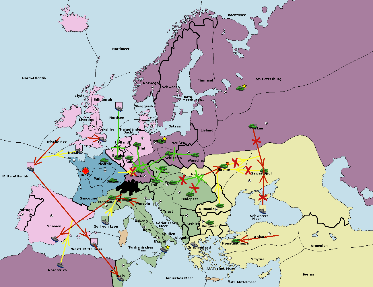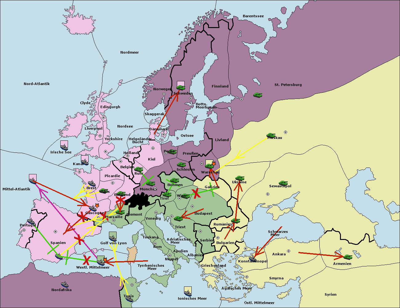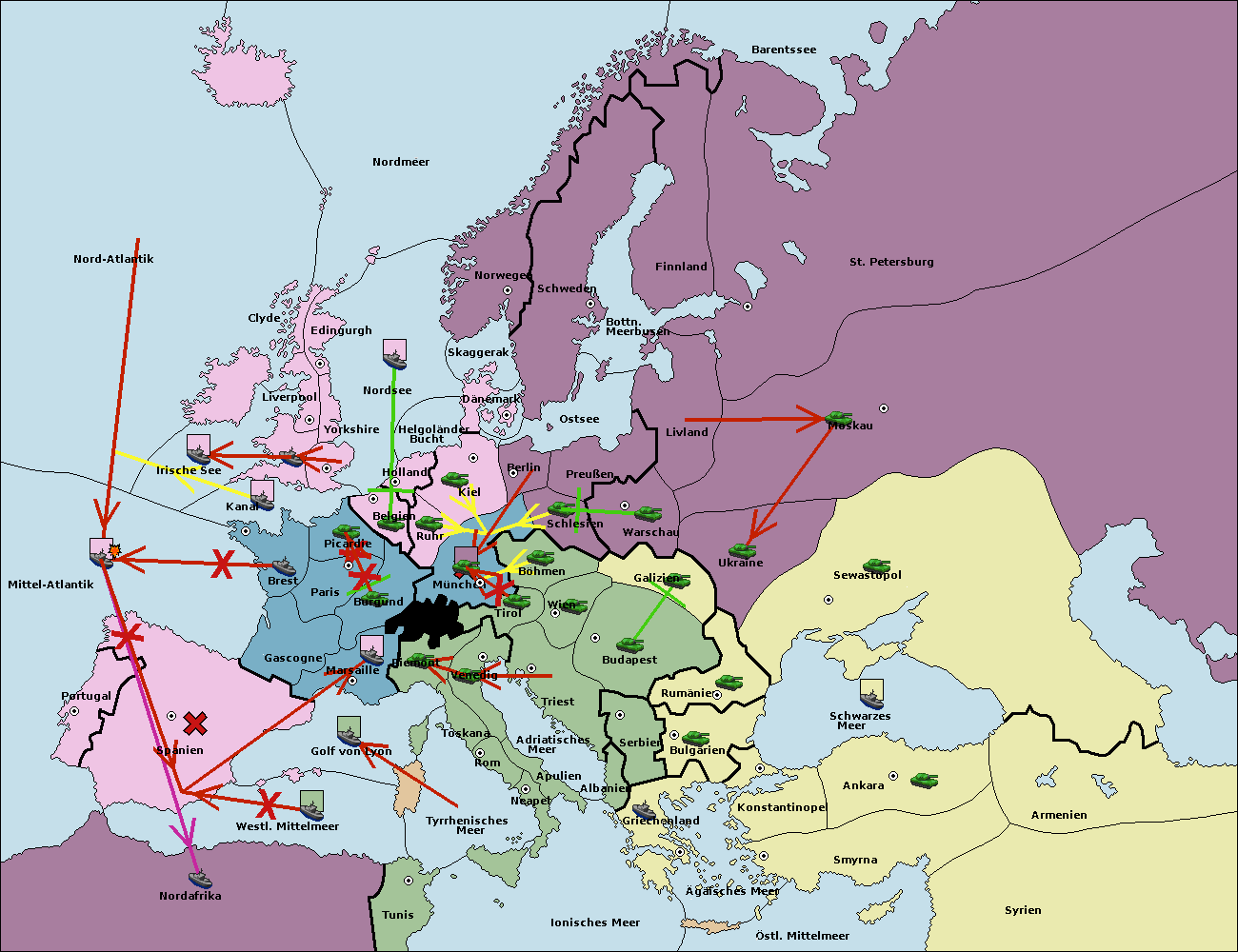 • Die Armee in Burgund support move nach München von Tirol. (gescheitert)