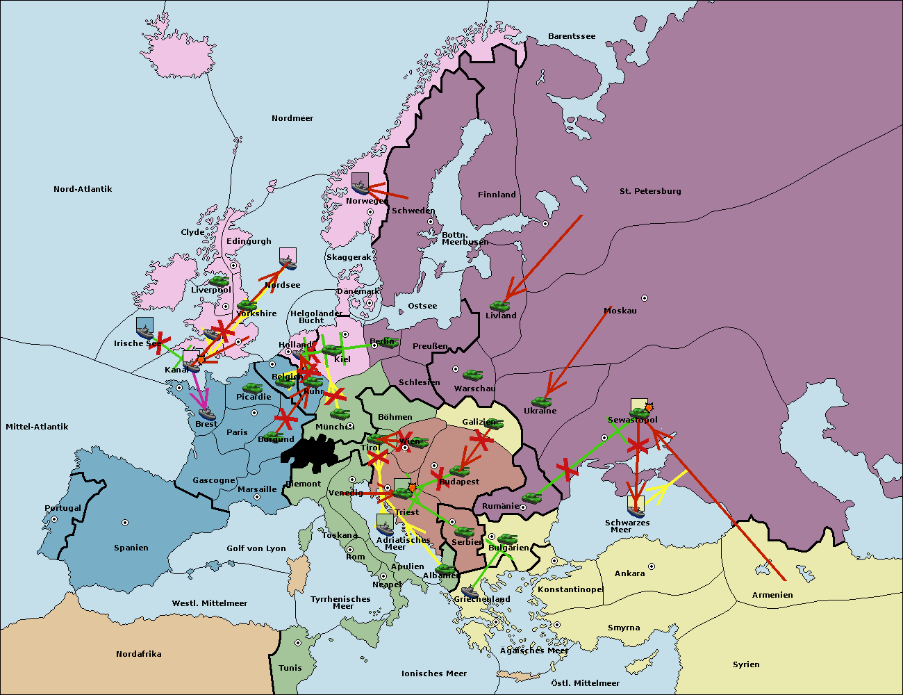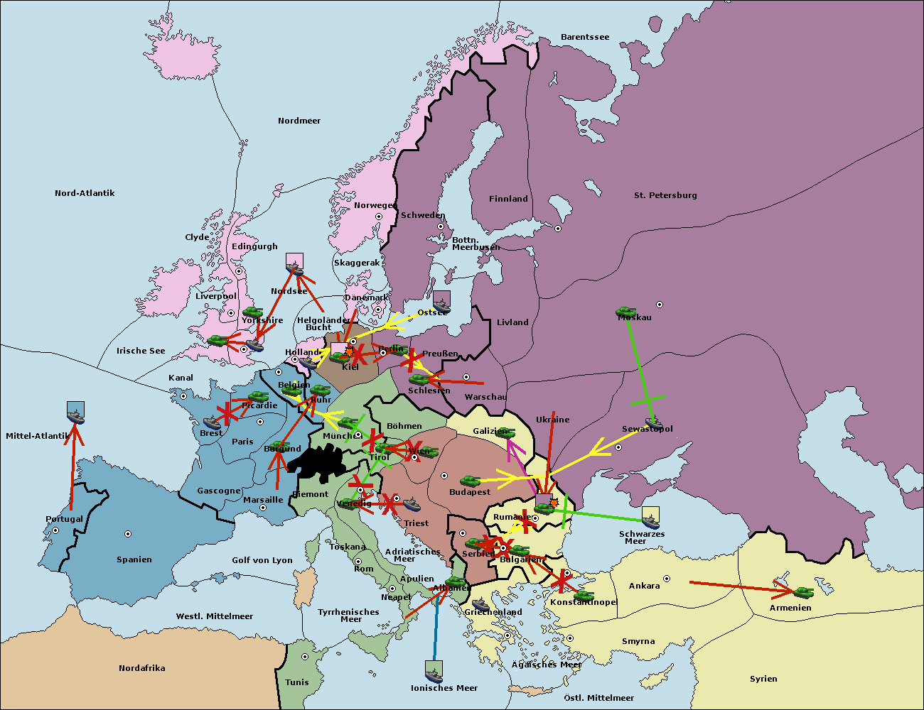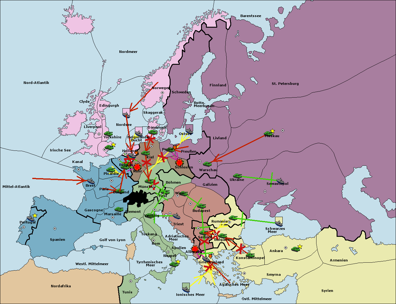 • Die Armee in Konstantinopel support hold nach Bulgarien.