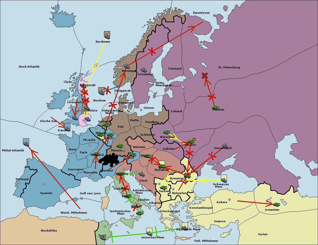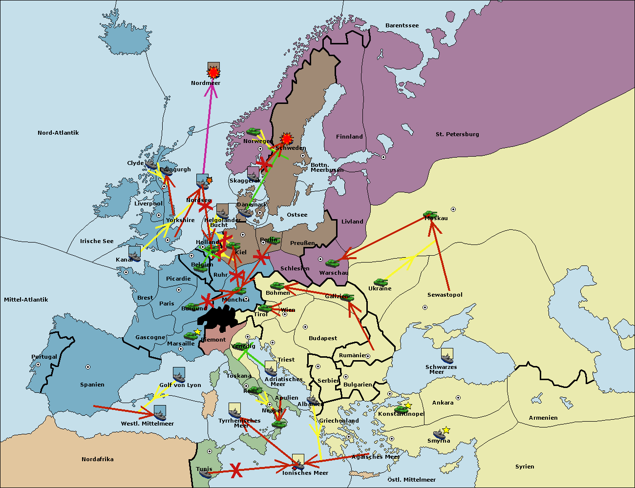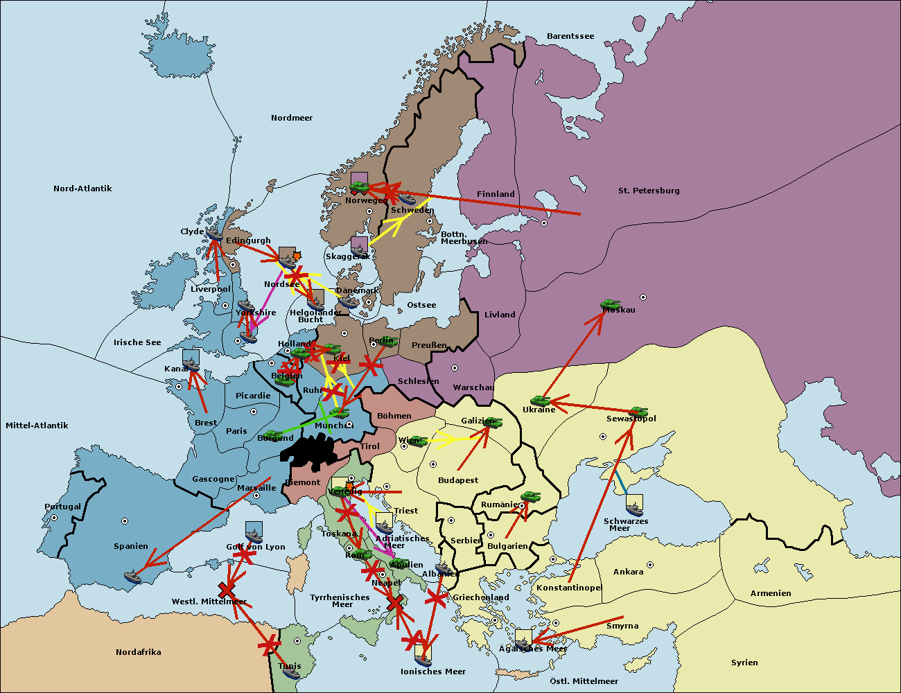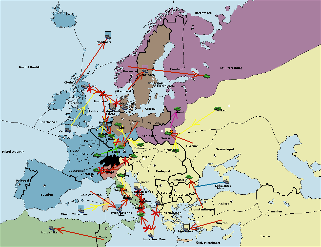 • Die Armee in München wird zerstörtFlotte in München gebaut.