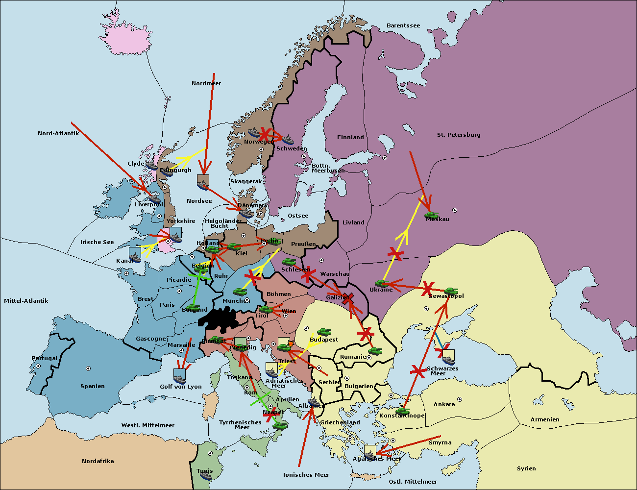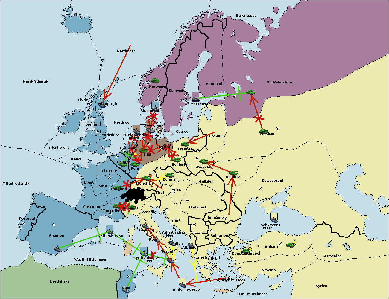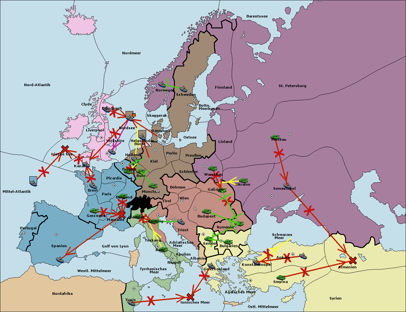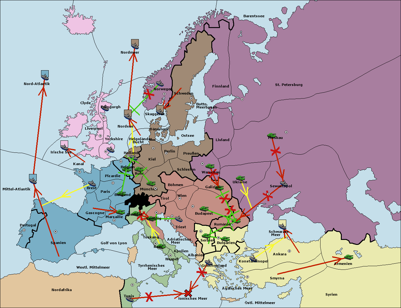 • Die Armee in München wird zerstörtFlotte in München gebaut.