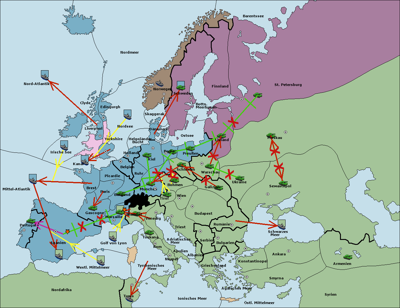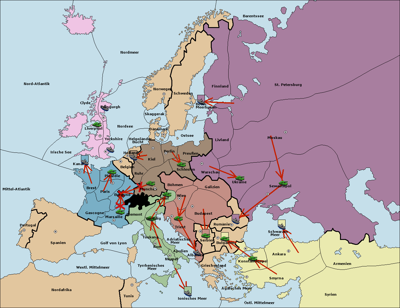 • Die Armee in München support move nach Berlin von Schlesien.