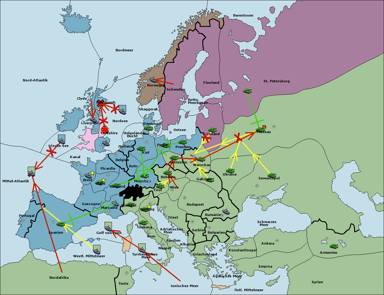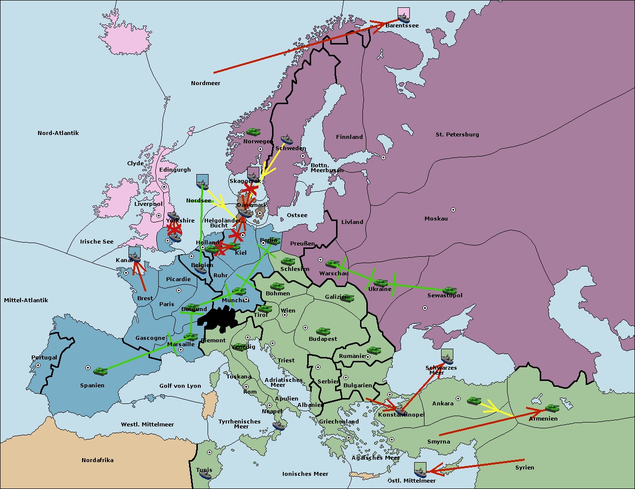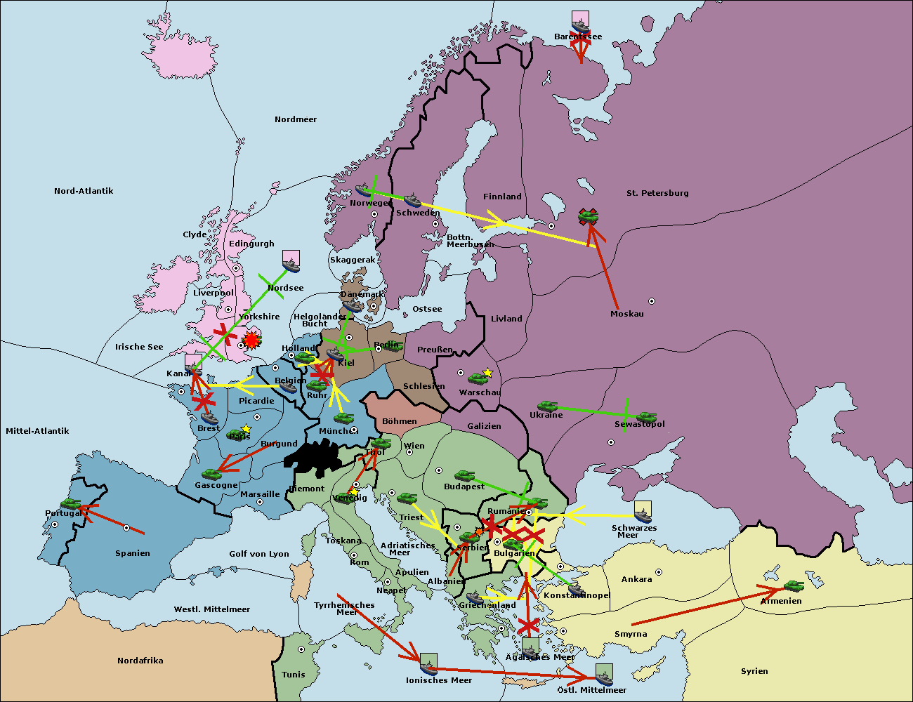 • Die Flotte in Kanal move nach Nordsee. (gescheitert)