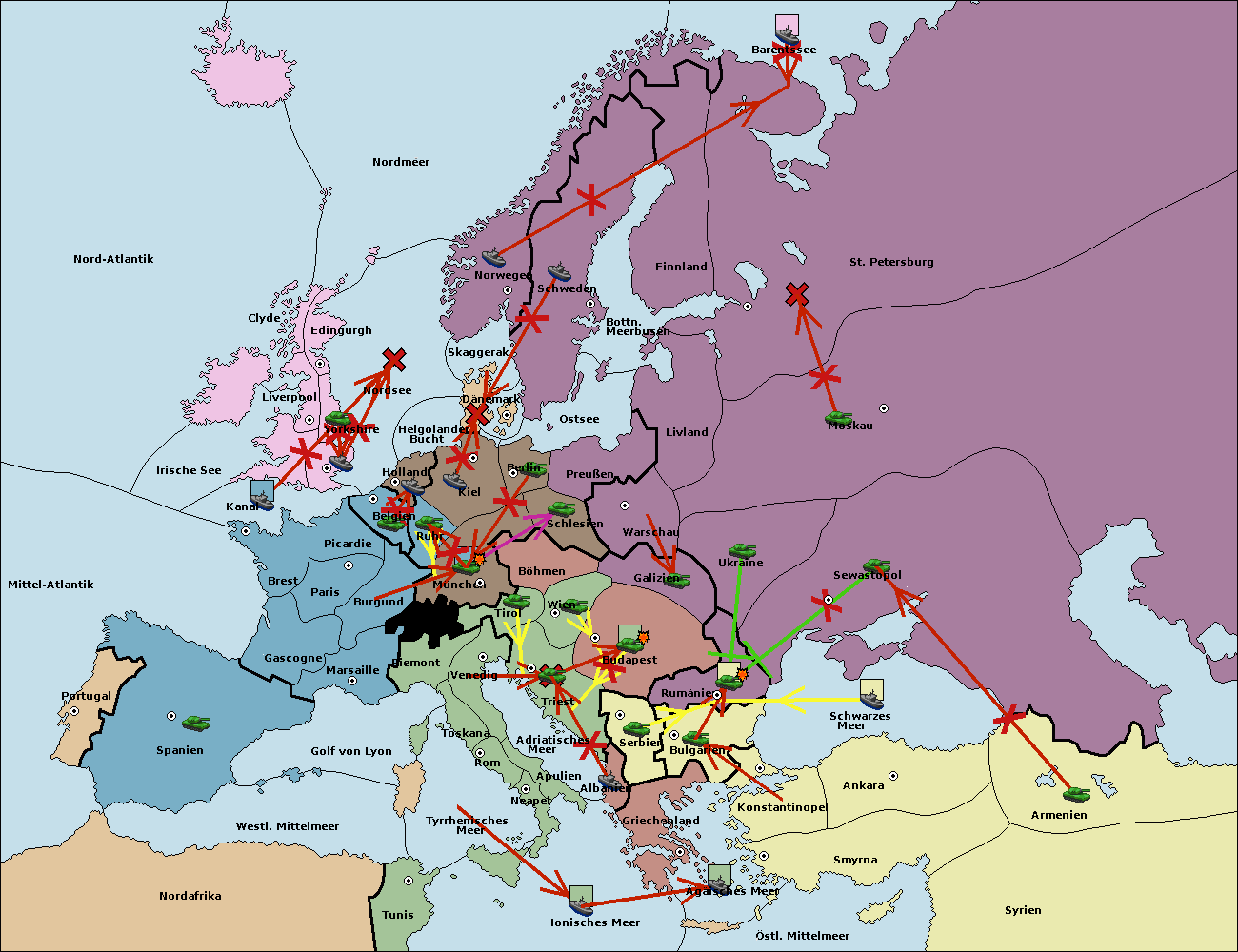 • Die Armee in Budapest support move nach Triest von Serbien.