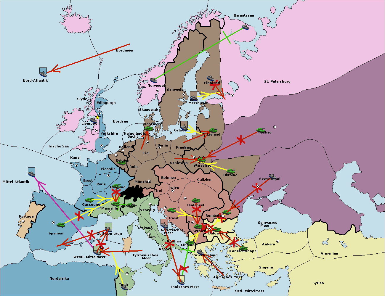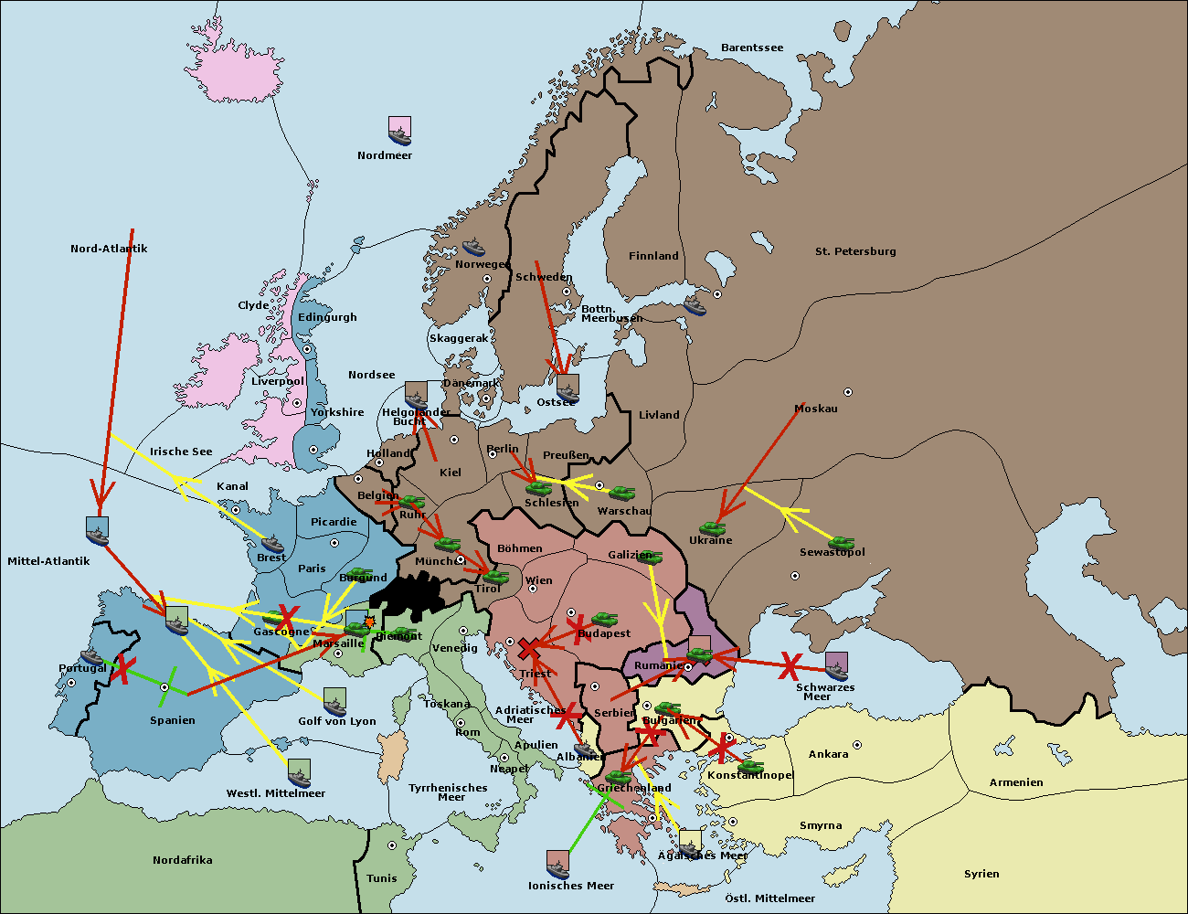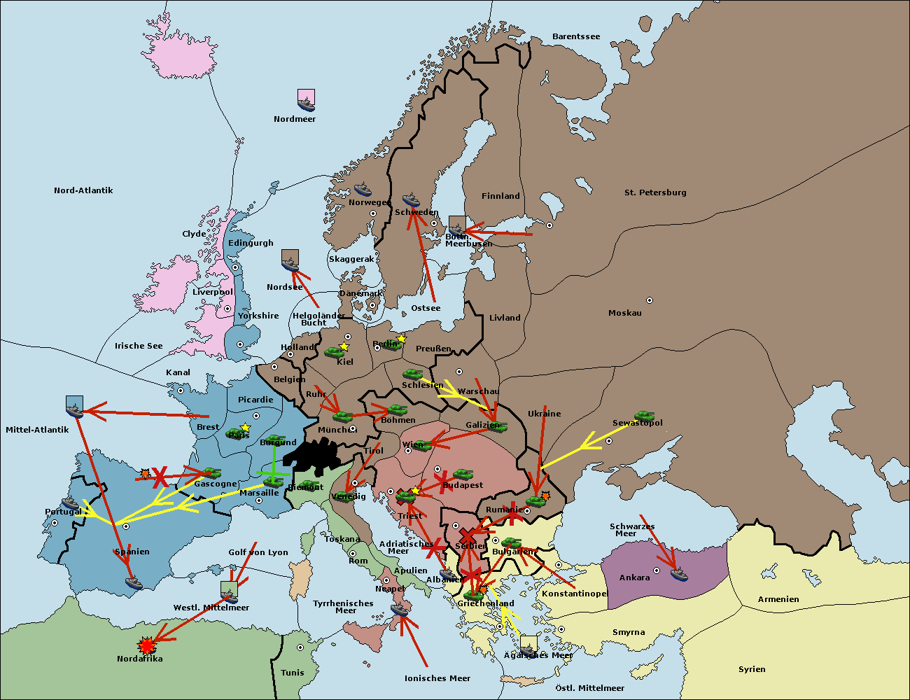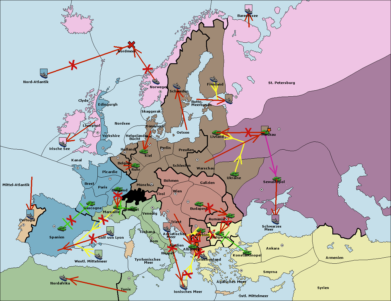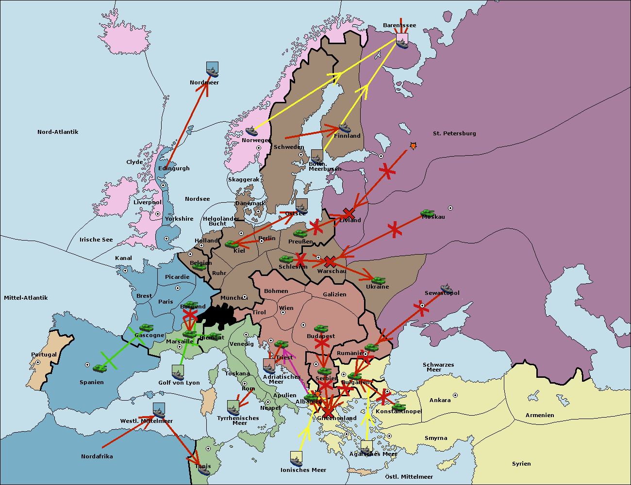 • Die Armee in Bulgarien wird zerstörtFlotte in Bulgarien gebaut.