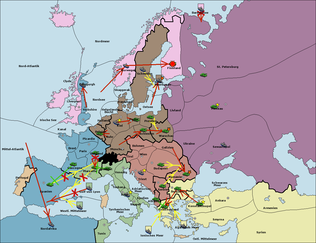 • Die Armee in St. Petersburg support hold nach Norwegen. (gescheitert)