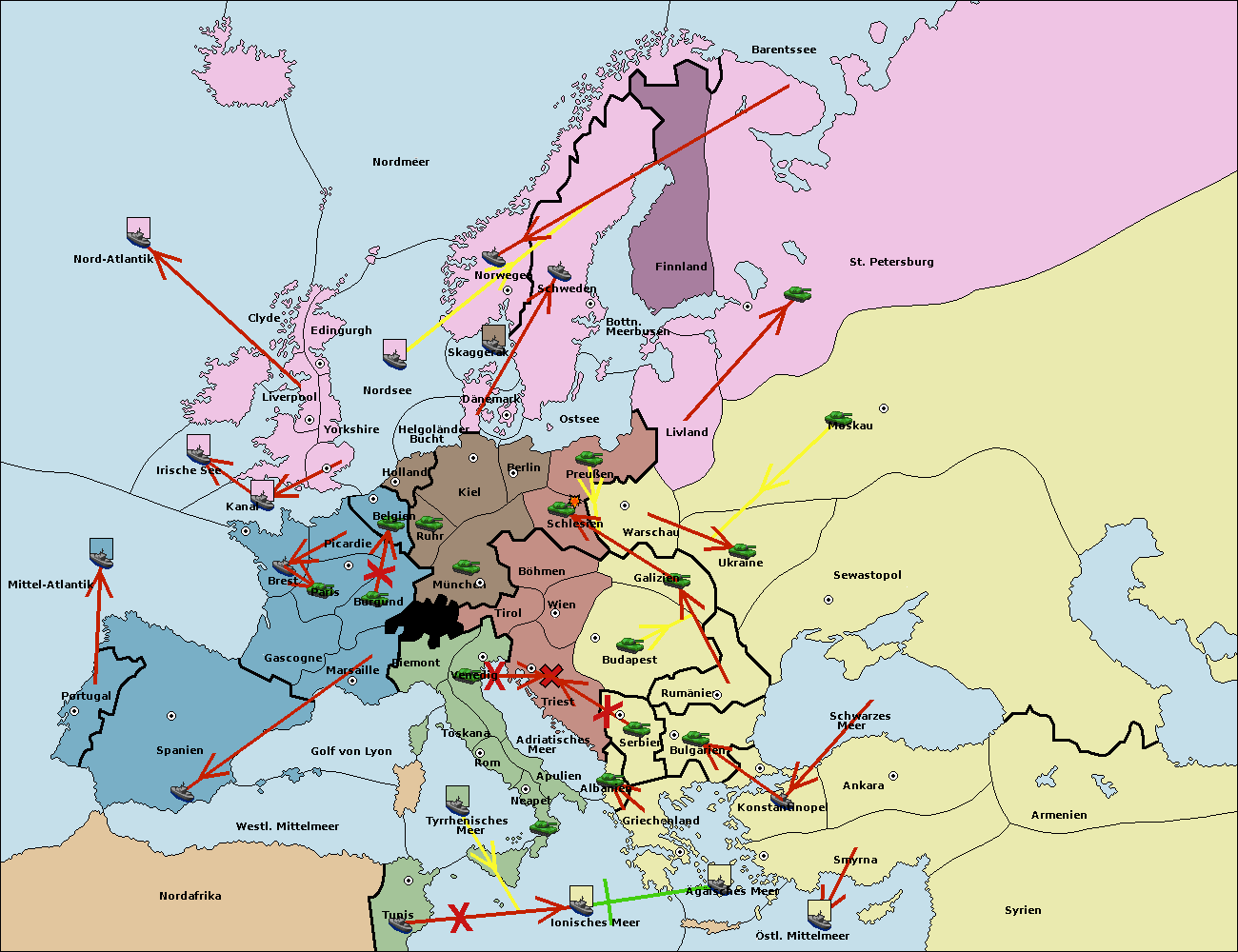 • Die Flotte in St. Petersburg (Nordküste) move nach Norwegen. (gescheitert)