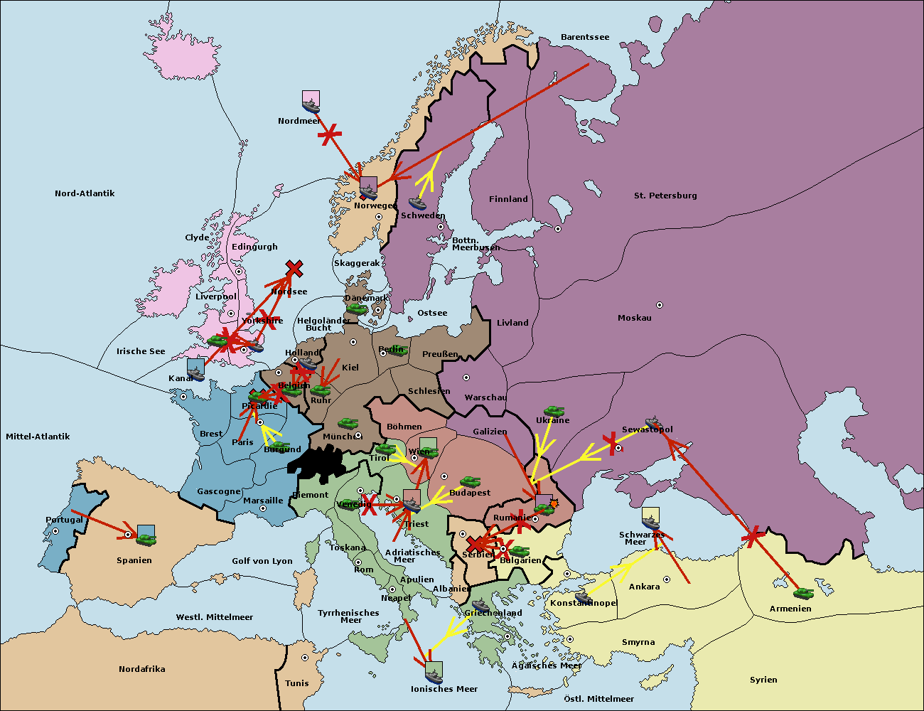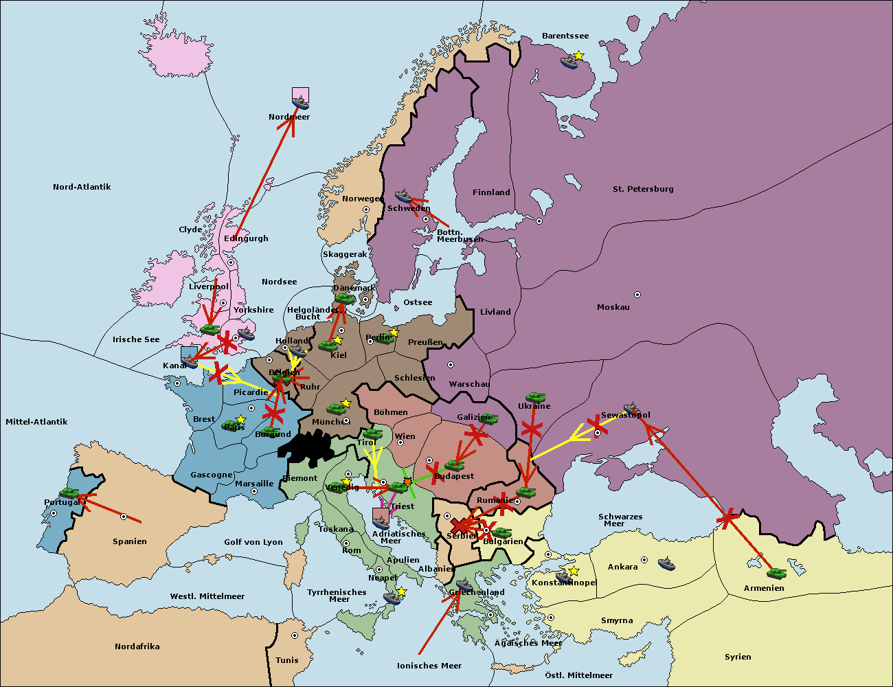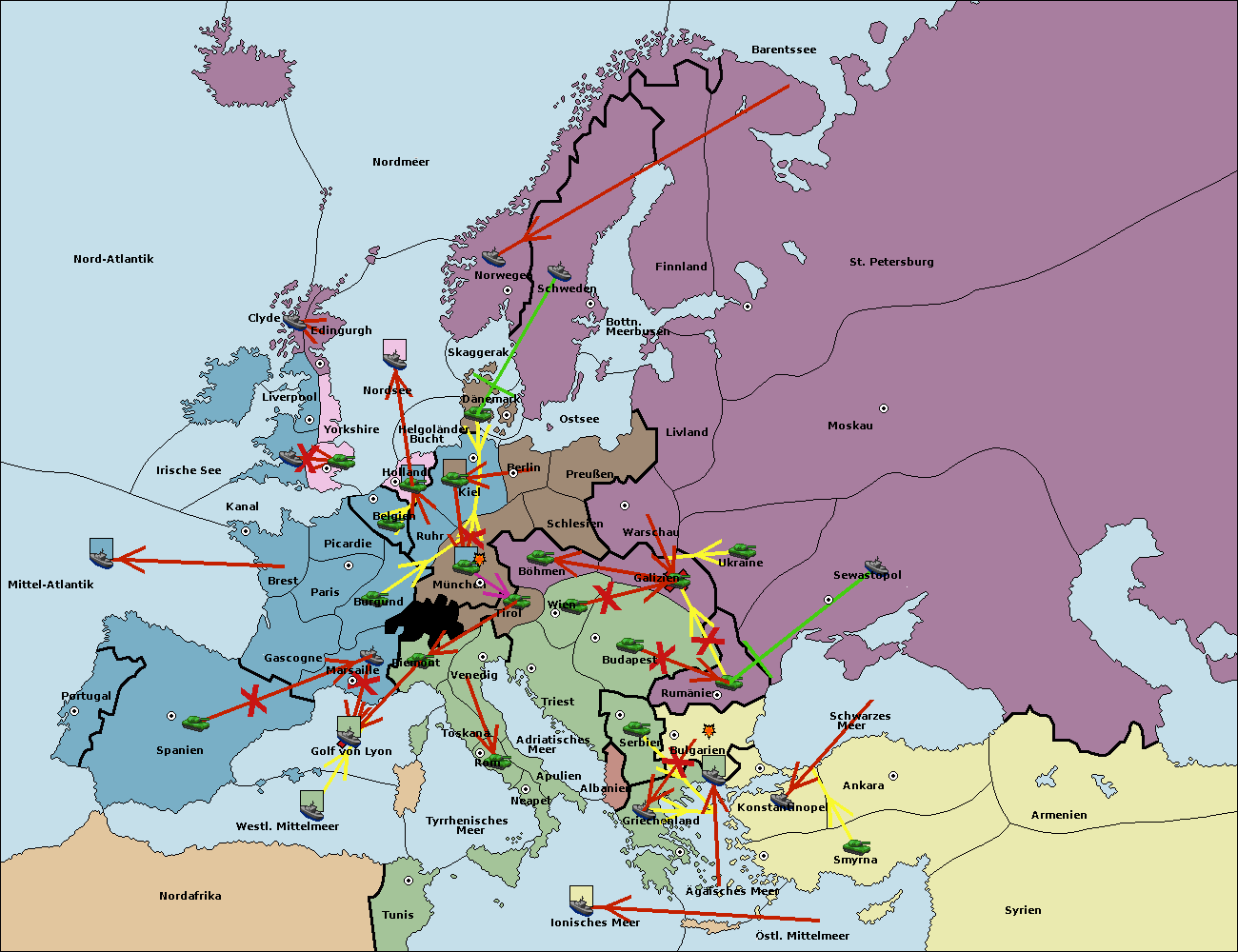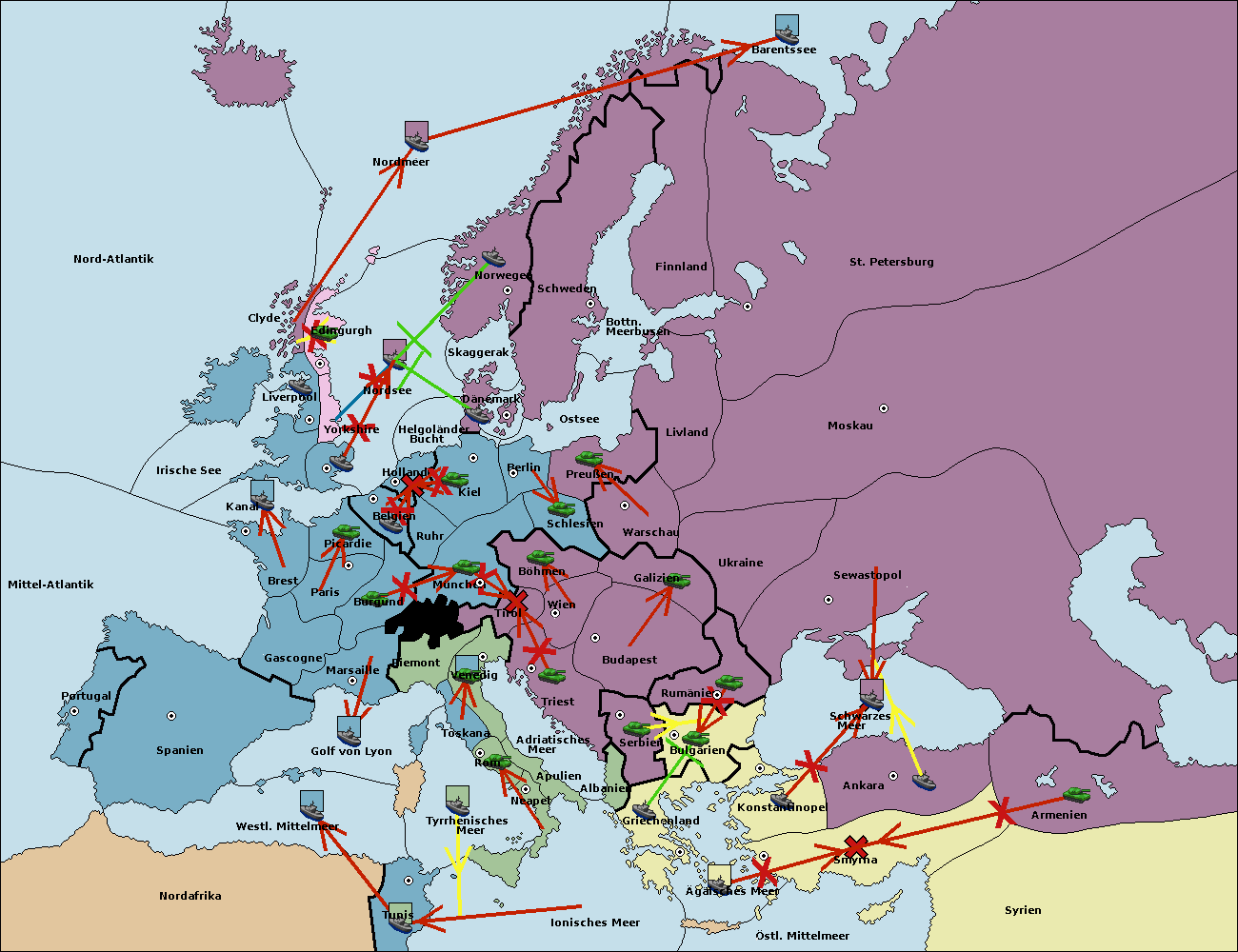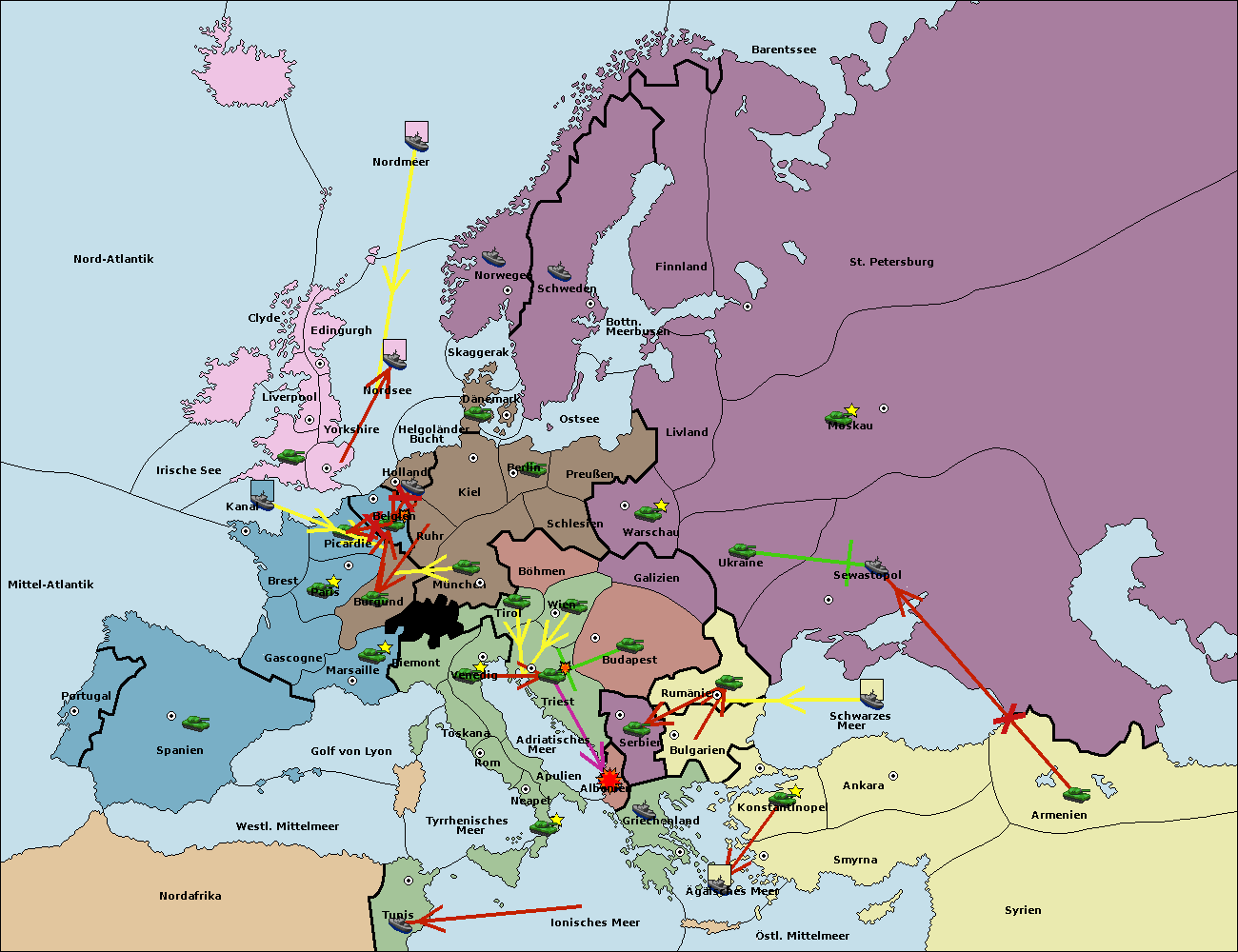• Die Armee in Bulgarien wird zerstörtFlotte in Bulgarien gebaut.