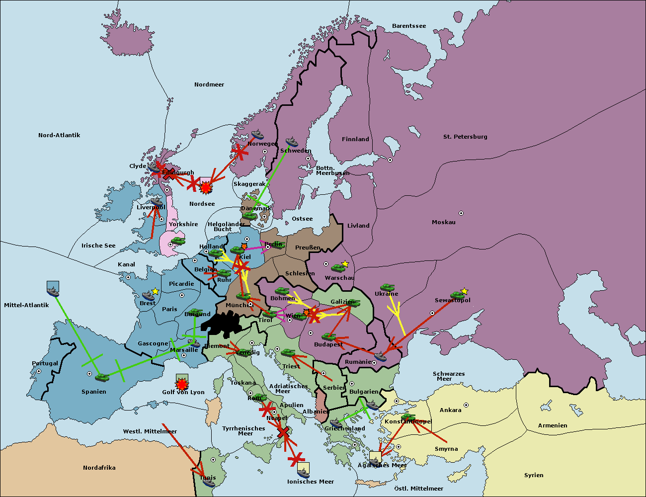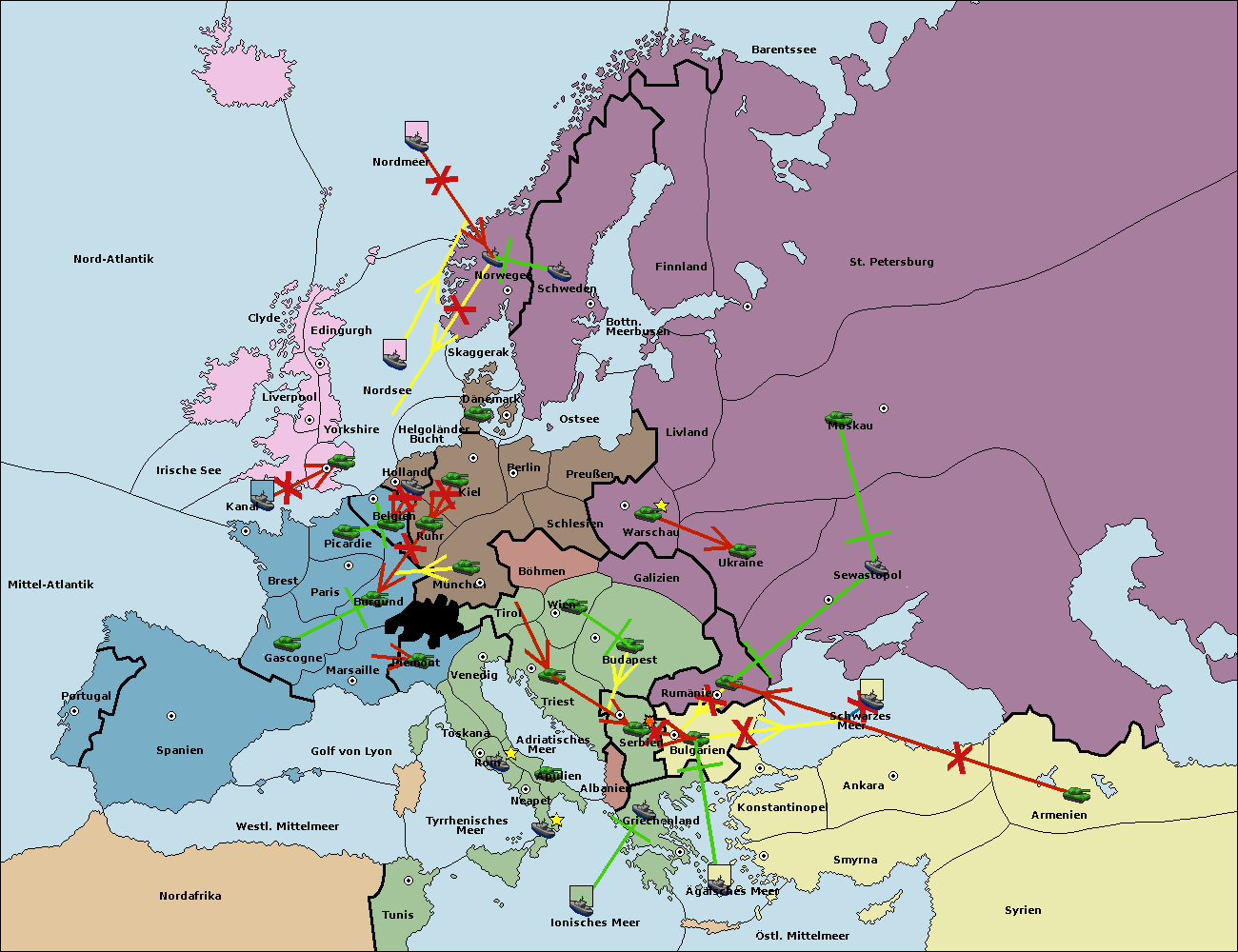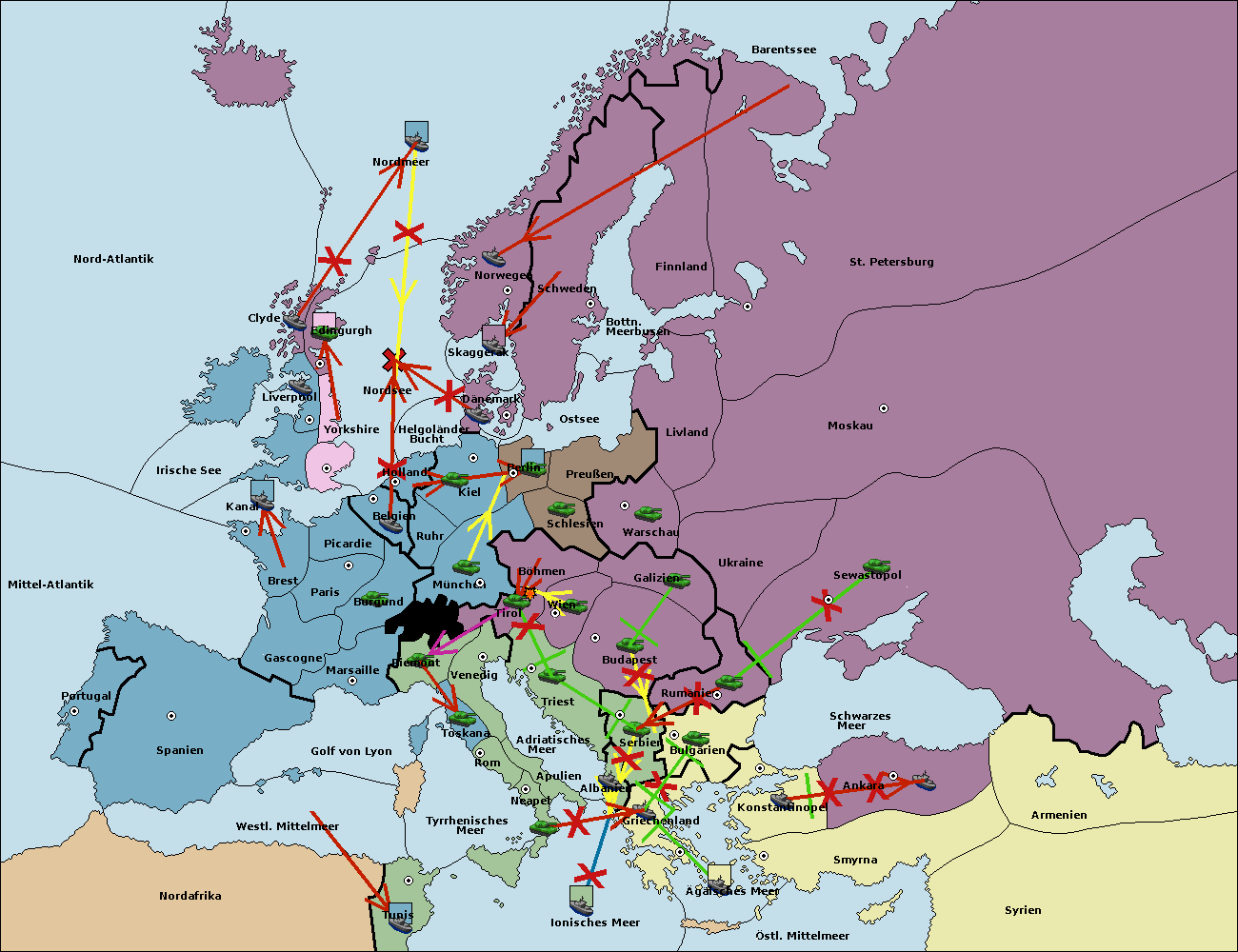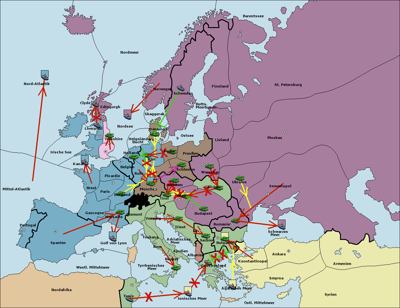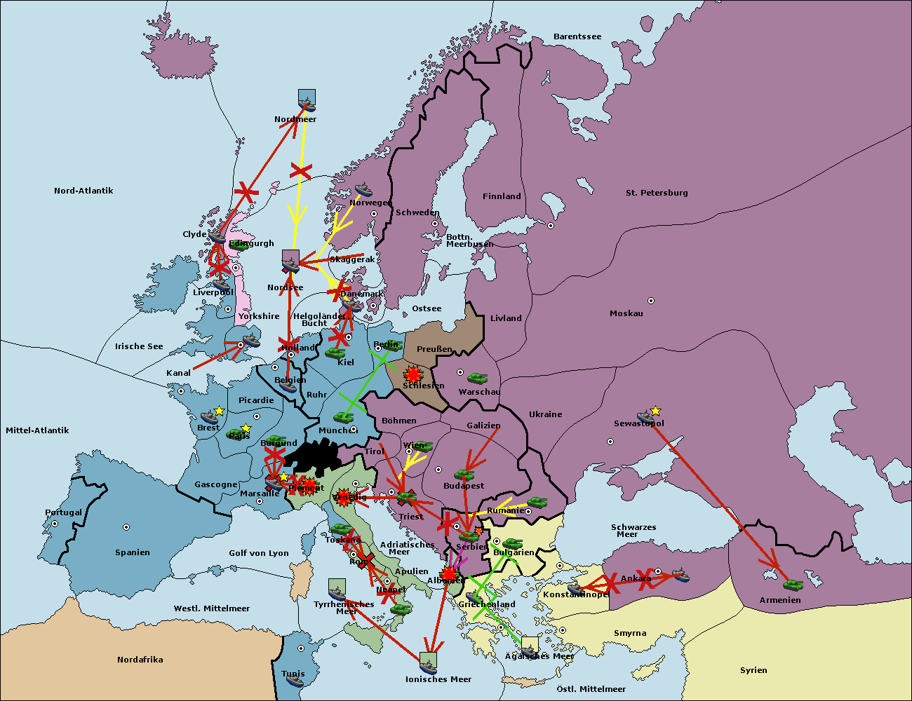 • Die Armee in Bulgarien wird zerstörtFlotte in Bulgarien gebaut.