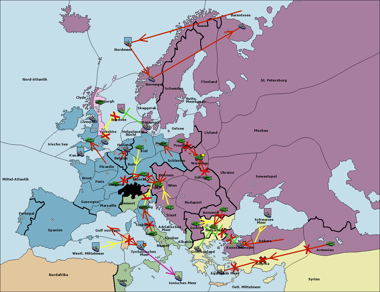 • Die Flotte in Konstantinopel support move nach Bulgarien von Rumänien. (gescheitert)