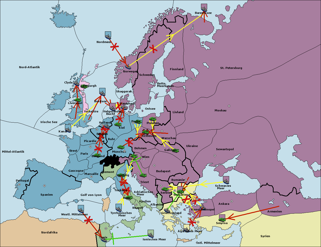 • Die Flotte in Ägäisches Meer support move nach Bulgarien von Konstantinopel. (gescheitert)