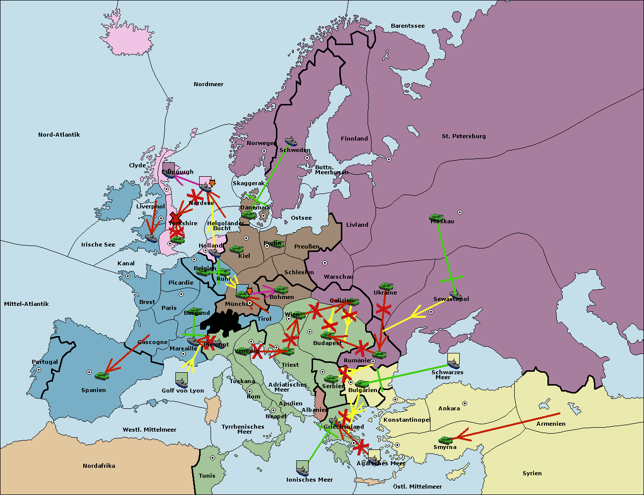 • Die Armee in Bulgarien move nach Serbien. (gescheitert)