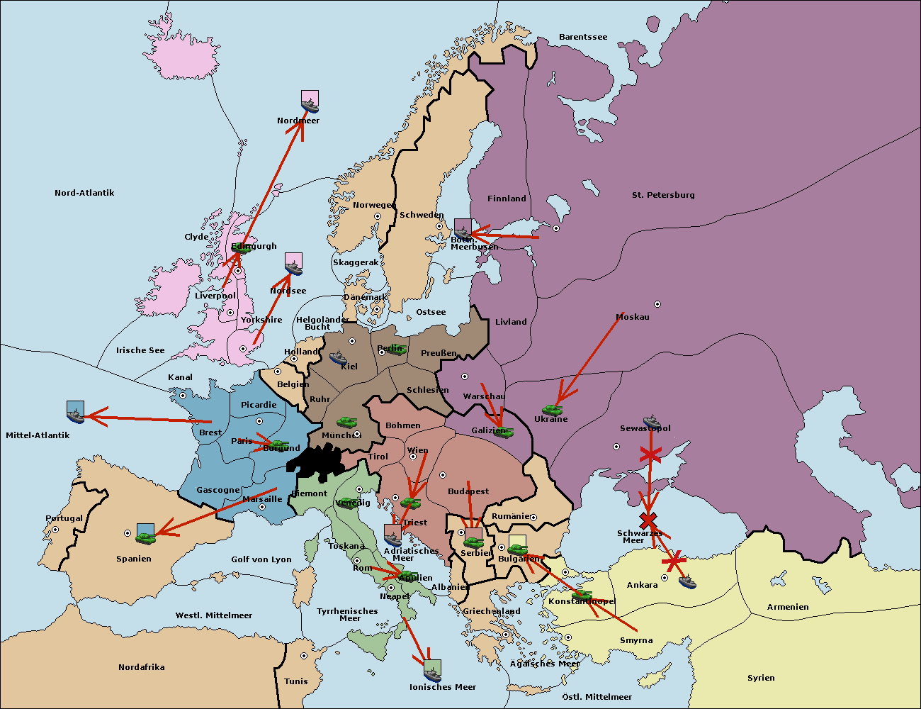 • Die Flotte in Griechenland support hold nach Bulgarien. (gescheitert)