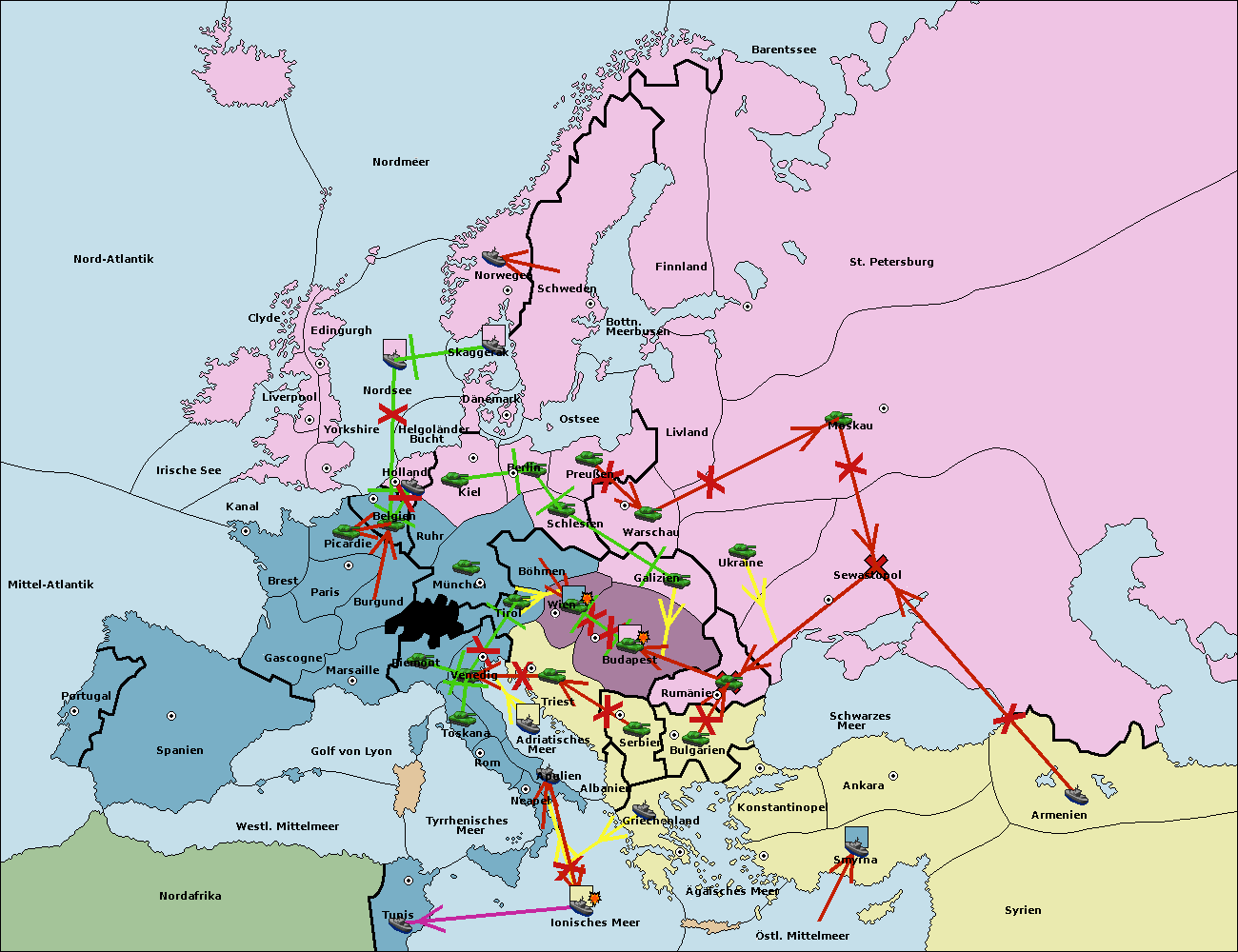 • Die Armee in Wien support move nach Galizien von Budapest.