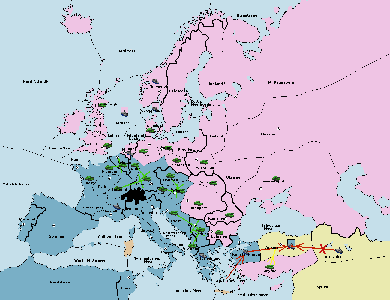 • Die Armee in Smyrna support move nach Ankara von Konstantinopel.