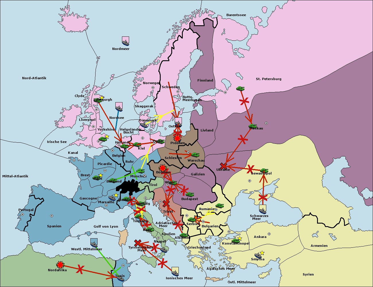 • Die Armee in Kiel support hold nach München. (gescheitert)