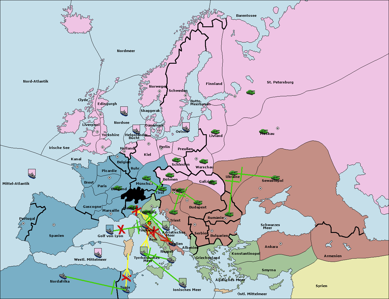 • Die Flotte in Nord Afrika move nach Tunis. (gescheitert)