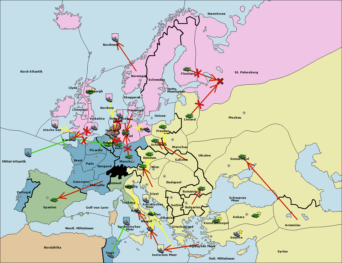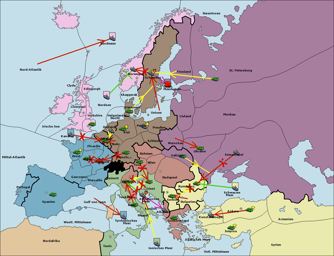 • Die Flotte in Kanal support move nach Belgien von Ruhr. (gescheitert)