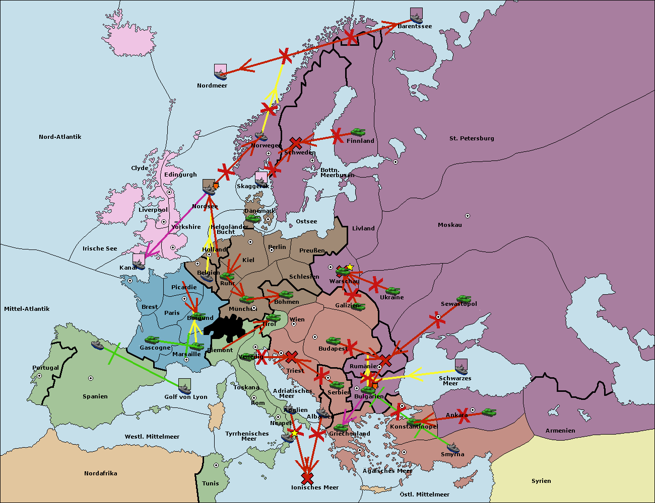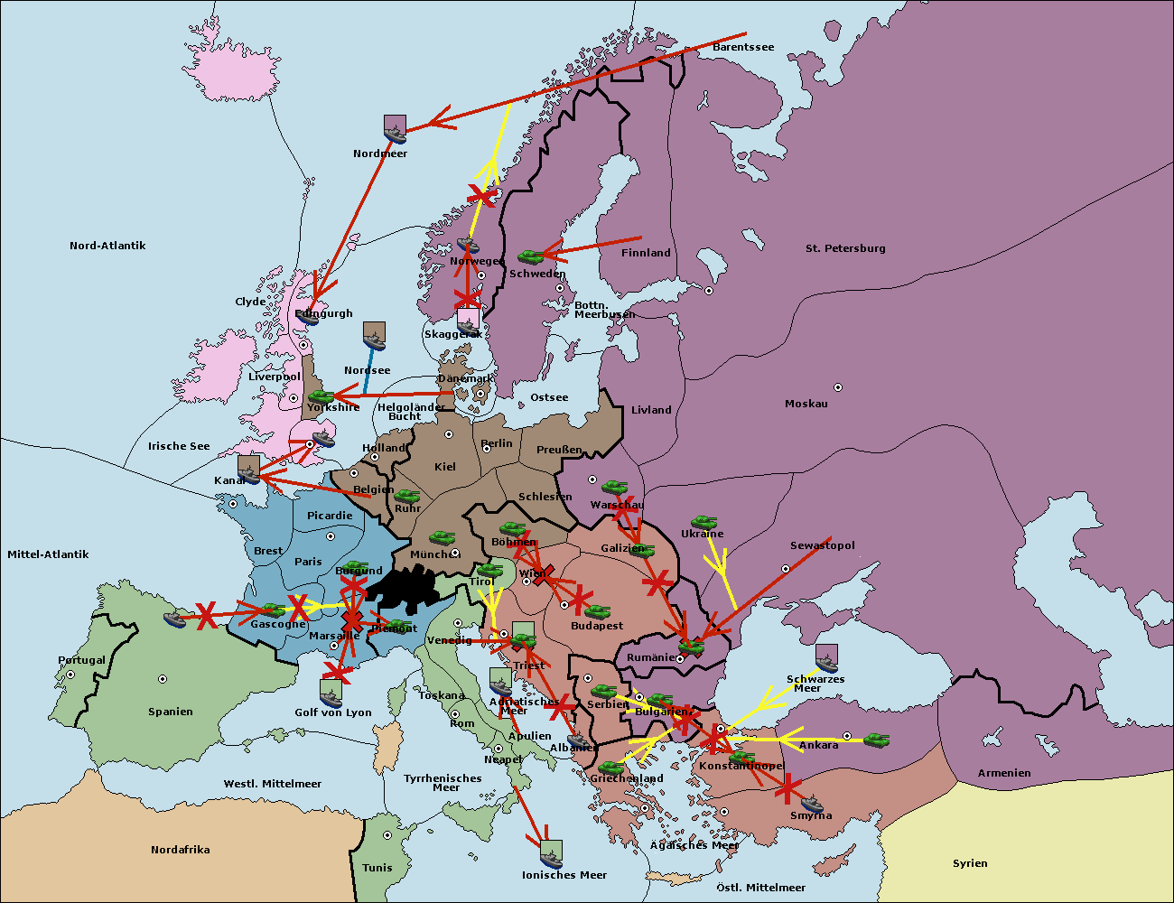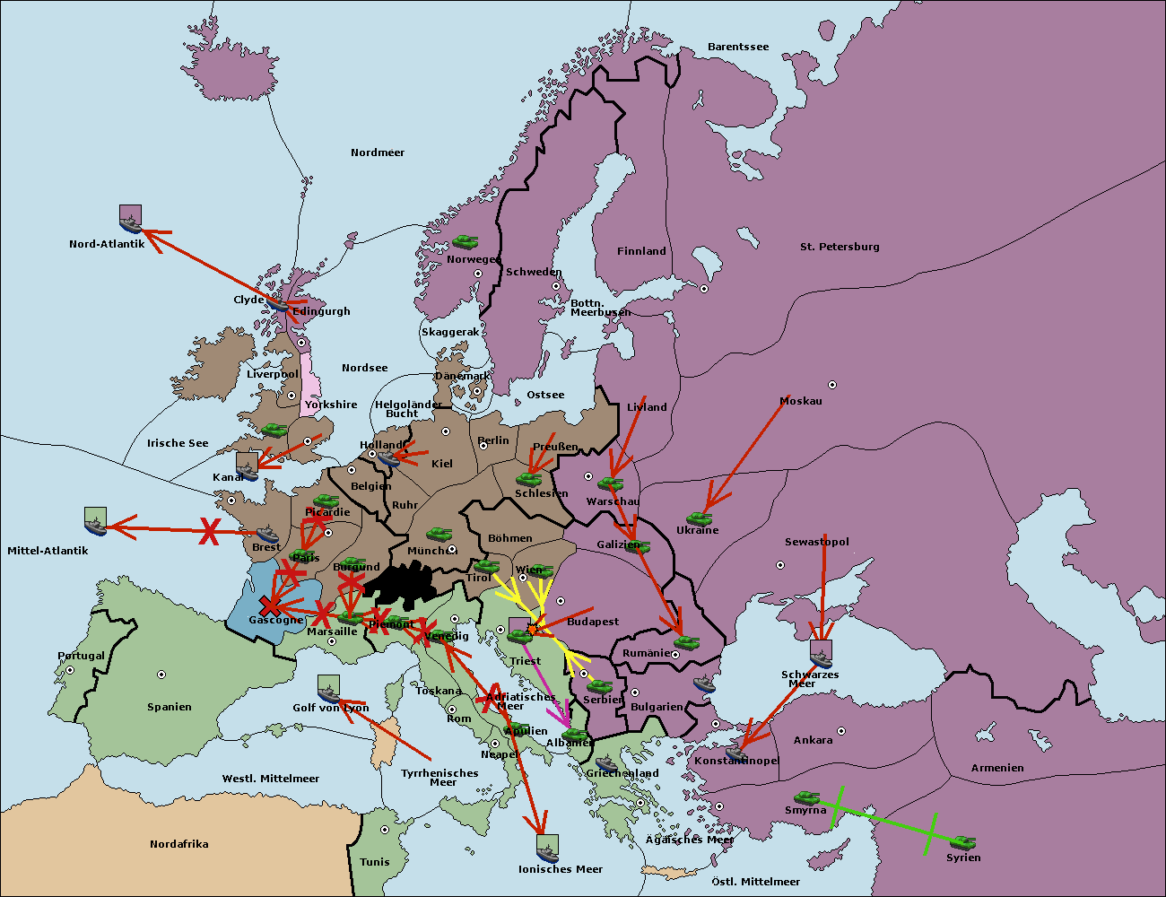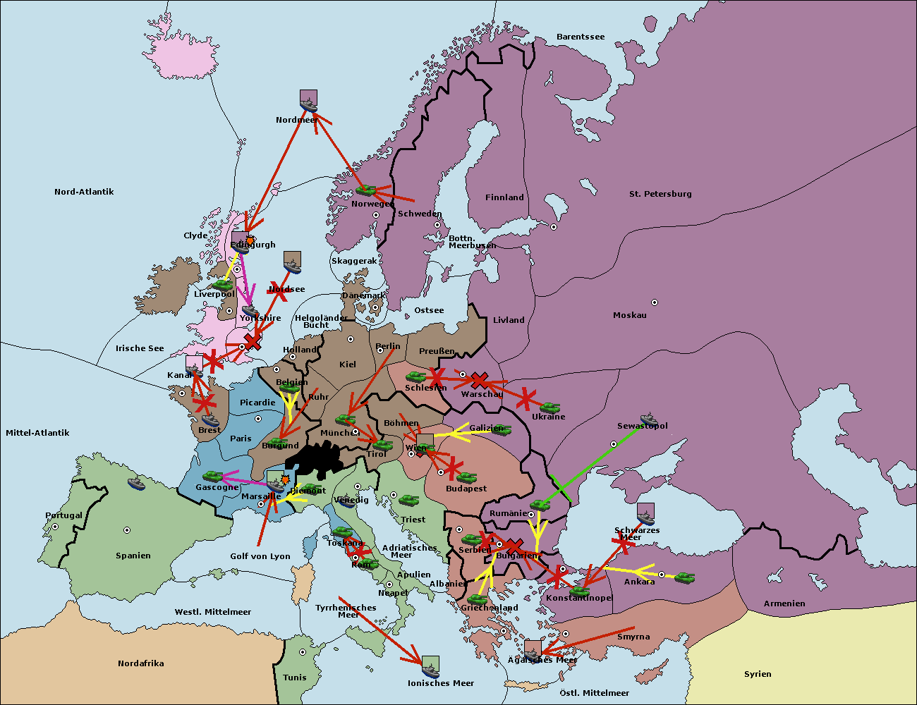 • Die Armee in Sewastopol move nach Bulgarien via Concoy. (gescheitert)